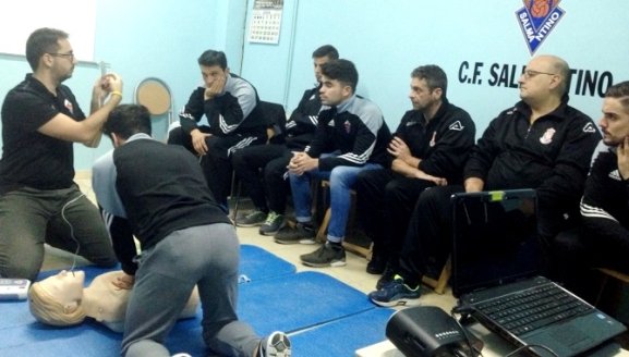 Esta semana concluye el Curso de Recuperación Cardio Pulmonar (RCP) Básica y DESA organizado por el Departamento de Metodología del club blanquinegro, que dirige José Enrique Rodríguez, Pitu, segundo entrenador, además, del primer equipo. El objetivo del curso es el de establecer un plan de enseñanza básica en la materia dentro del club que arranca con este curso que será objeto de reciclajes posteriores. Con la Sala de Readapación del CF Salmantino como centro de operaciones, el curso es obligatorio para los cuerpos técnicos de todos los equipos del club, con el objetivo de que estén preparados para cualquier contingencia, y se celebra en cuatro sesiones, las dos celebradas la pasada semana, y las dos (mañana y el miércoles) que quedan por celebrarse.