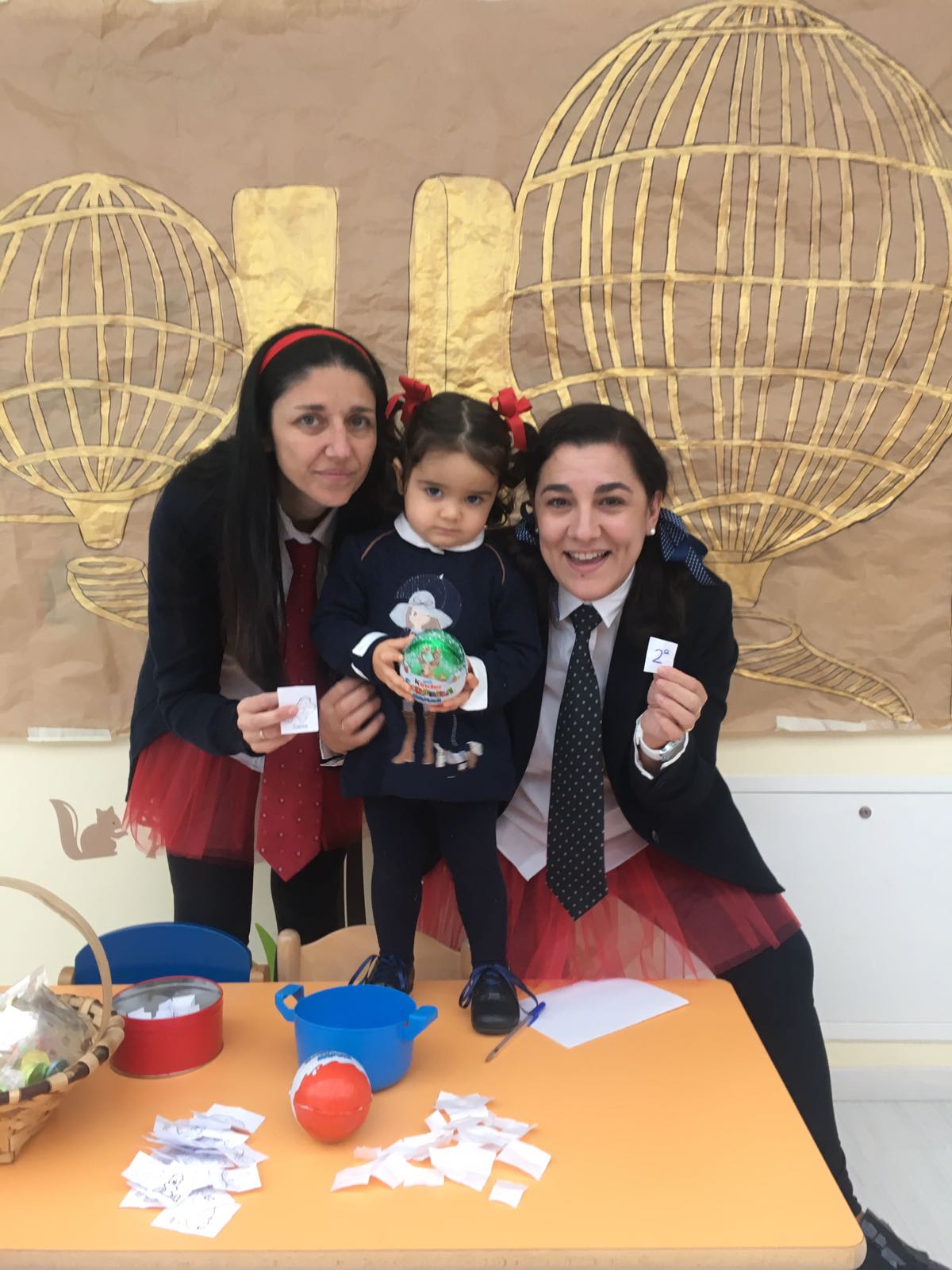 En este caso, las responsables de la Escuela se transformaron en 'Niñas de San Ildefonso' para poner en juego una serie de obsequios entre todos los niños que asisten al centro. En este caso, el primer premio del Sorteo recayó en Erik, el segundo premio fue para Marcos y el tercero para Sofía.