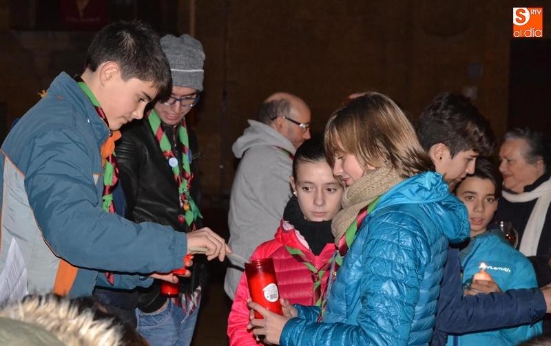 La Plazuela de San Salvador acogió en la tarde del viernes por segundo año consecutivo el reparto entre los mirobrigenses de la Luz de la Paz de Belén, la llama que cada año encienden los Scouts y Guías de Austria en la Cueva del Nacimiento de Jesús, donde hay una llama permanente.