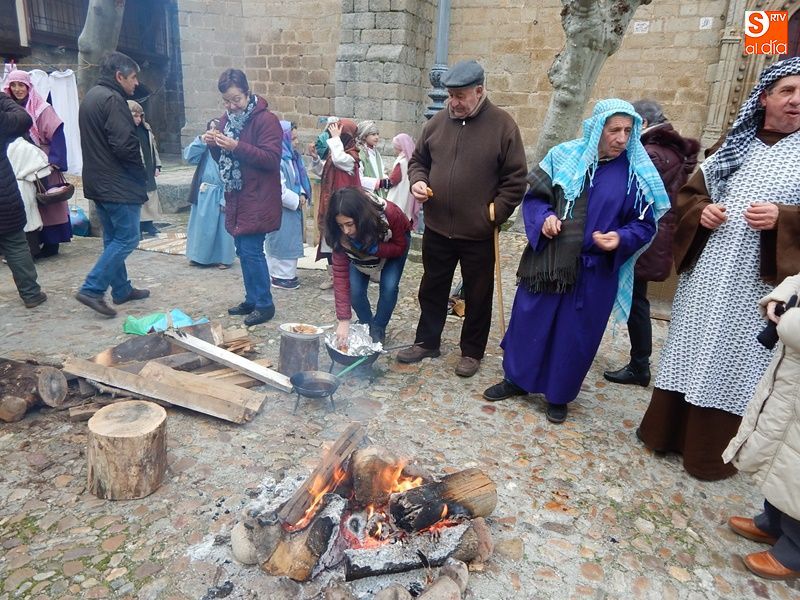 La Plaza Mayor de Ledesma se ha transformado este viernes en escenario idóneo para acoger un sorprendente belén viviente, organizado por la Asociación de Amigos de Ledesma, al que no le ha faltado detalle. Una cita que ha llenado la villa de ambiente navideño en la jornada previa a No