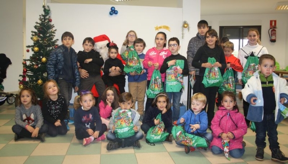más de caramelos y algunas chucherías, Papá Noel estuvo de lo más solidario con la entrega de una mochila de Ayuda en Acción y una pulsera de Unicef, aunque fue lo primero lo más agradecido, especialmente por los más pequeños.