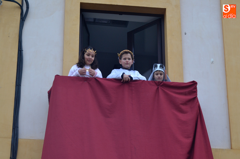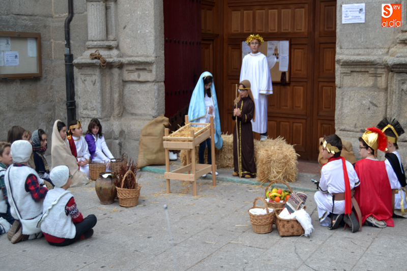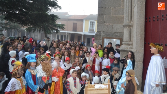 La Plaza Agustín Martínez Soler se ha convertido por unas horas en la ciudad de Belén para acoger la representación del nacimiento de Jesús llevado a cabo por más de un centenar de niños, dentro de una actividad organizada por la comunidad parroquial de Peñaranda.