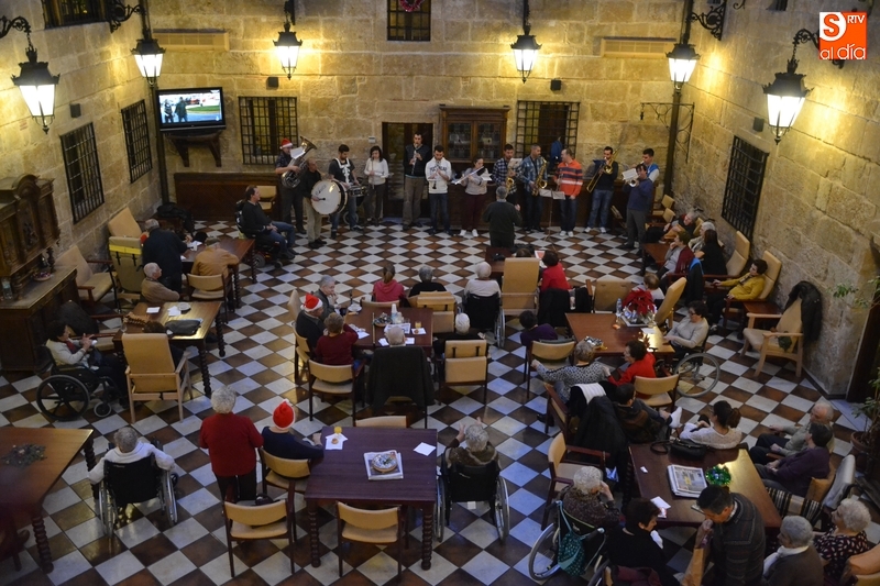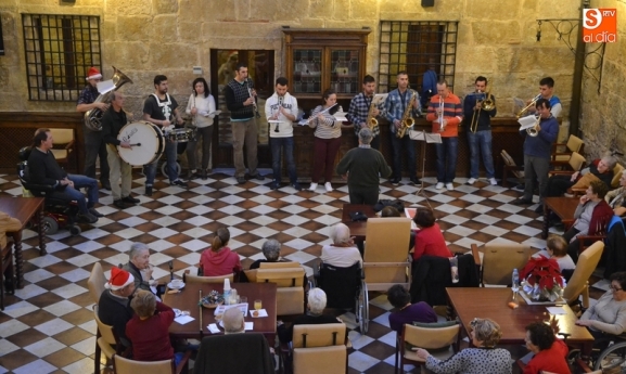 El Hospital de la Pasión y la Residencia Obispo Téllez de Ciudad Rodrigo recibieron en la tarde del sábado la visita de la Banda Municipal de Música, que un año más cumplió con su tradición de animar la tarde de Nochebuena a los residentes de ambas instituciones.