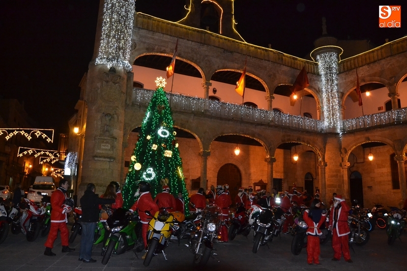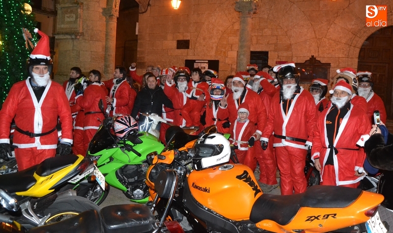 Las calles de Ciudad Rodrigo fueron escenario a media tarde del día de Nochebuena de una novedosa actividad promovida por el Grupo Motero Los Clandestinos, en la que se empaparon plenamente del espíritu navideño.