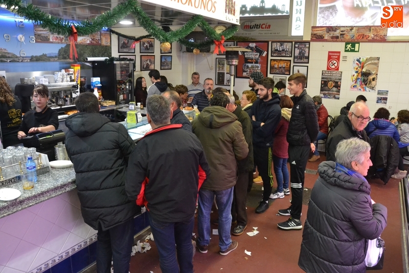Según fue avanzando la mañana se pudo ver a más grupos tomando algo en los bares, por ejemplo en la zona de la Plaza Mayor, donde el aparcamiento está ya prohibido desde las 14.00 horas y hasta la mañana del próximo martes. En esa Plaza Mayor, por cierto, se podía ver a un grupo de personas ataviadas con gorros de Papá Noel.