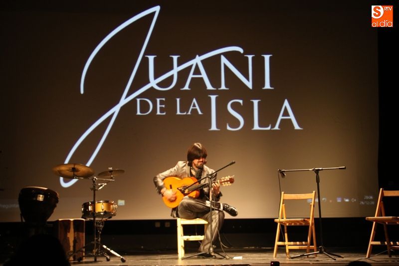 A Juani de la Isla le bastaron apenas tres canciones para meter en calor al público congregado en el teatro de Alba de Tormes. Y eso que el guitarra de San Fernando apenas se dirigió a los asistentes porque como él mismo ha reconocido en varias entrevistaS "yo no soy de hablar me pongo más nervioso, soy de tocar". Y así fue, habló más una guitarra que a estas alturas ya ha colaborado con artistas de la talla de Joaquín Sabina, El Barrio, José Mercé o Sara Baras.