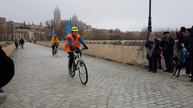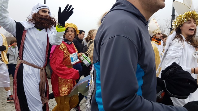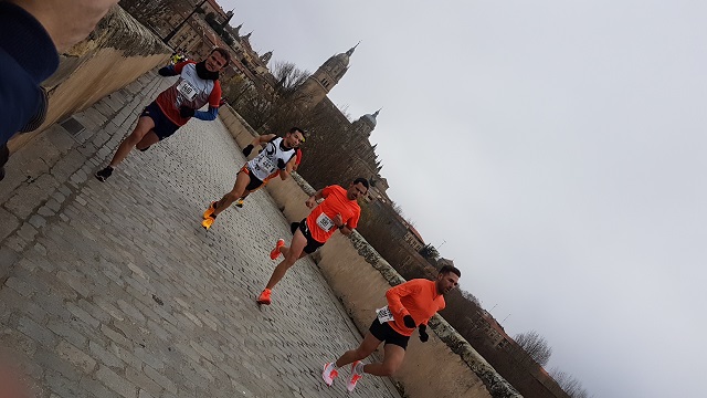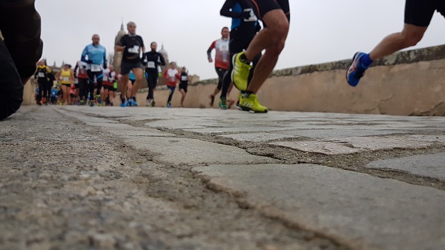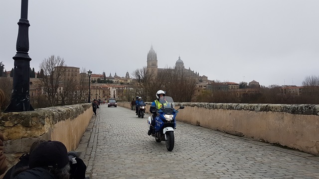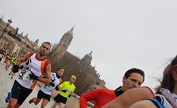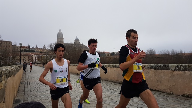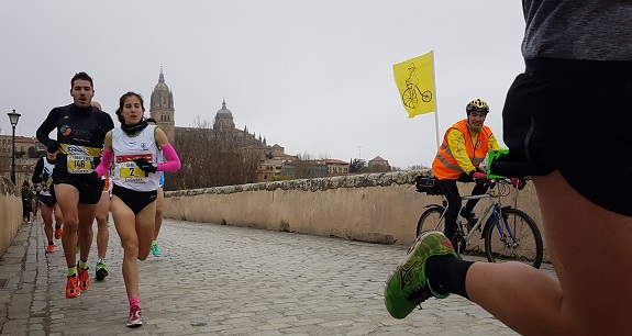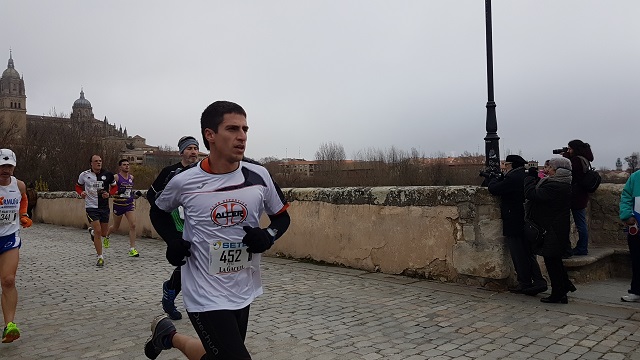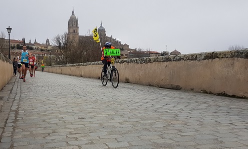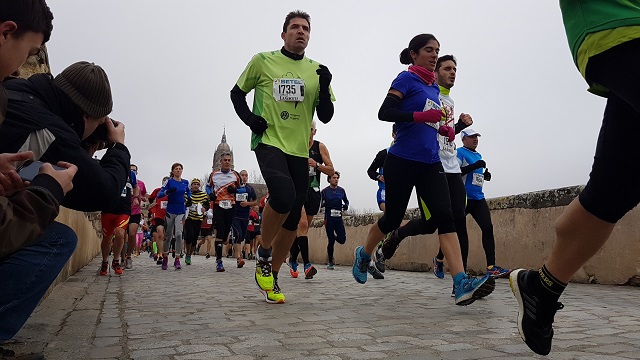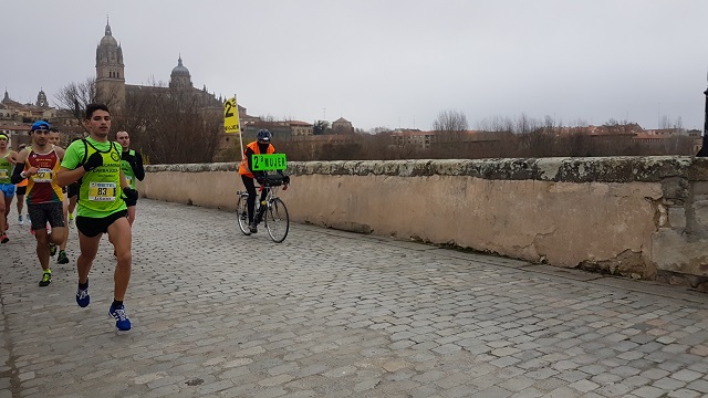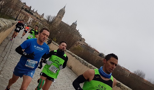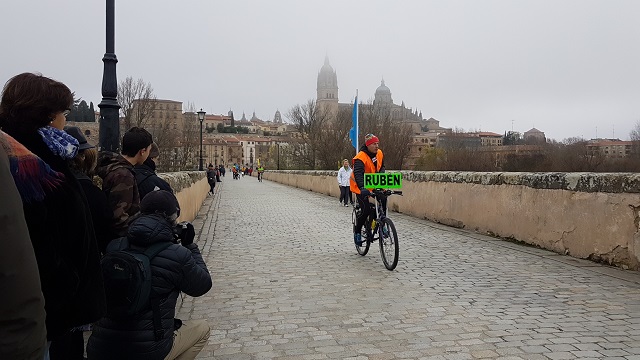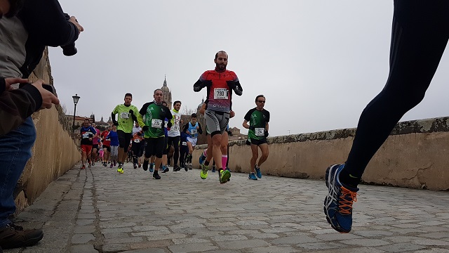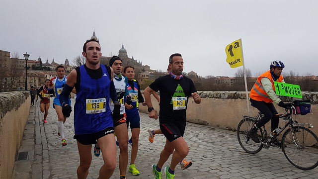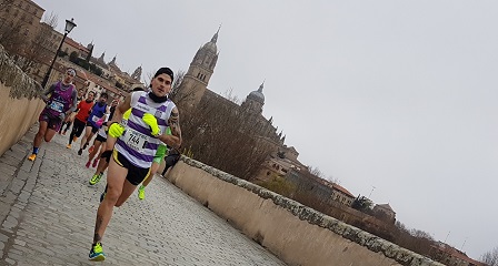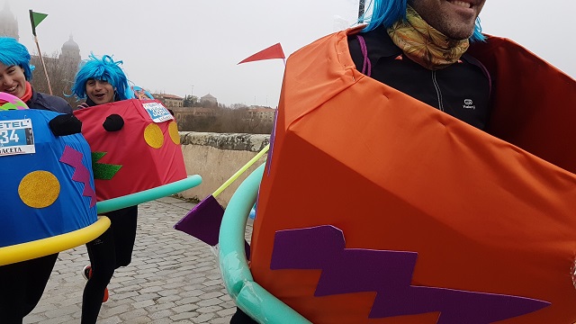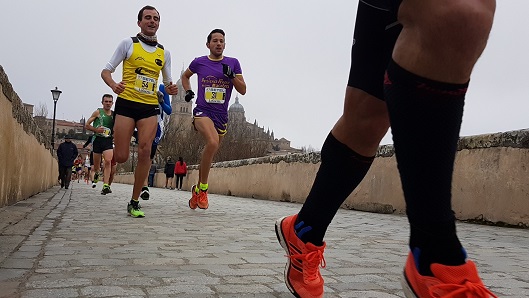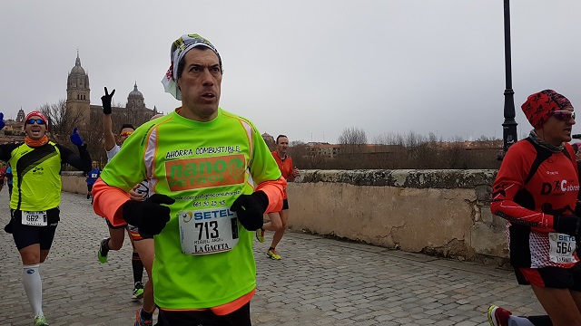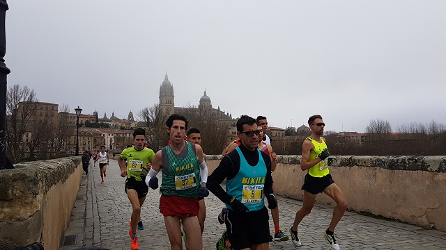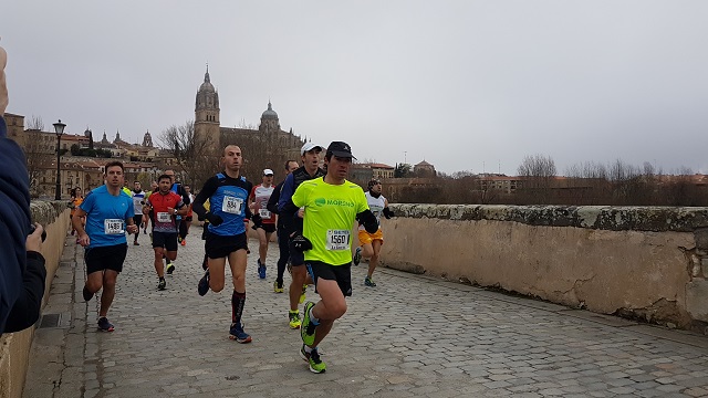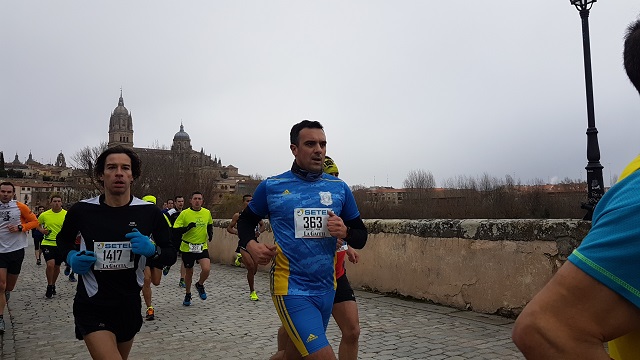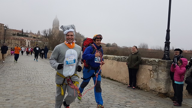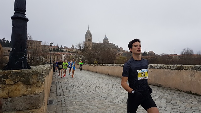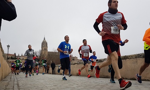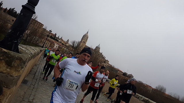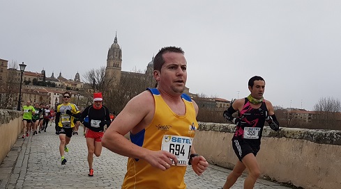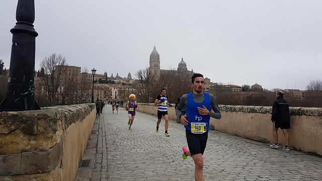 La San Silvestre salmantina deja siempre bellas estampas por la ciudad, especialmente en el casco histórico. Uno de los puntos más interesantes para apreciar esta hilera de corredores es el Puente Romano con las catedrales al fondo. Ángeles Rebollo ha recogido el momento en el que pasaba el grueso del 'pelotón' multicolor, en el que se aprecia la alegría y el ambiente festivo de la carrera.