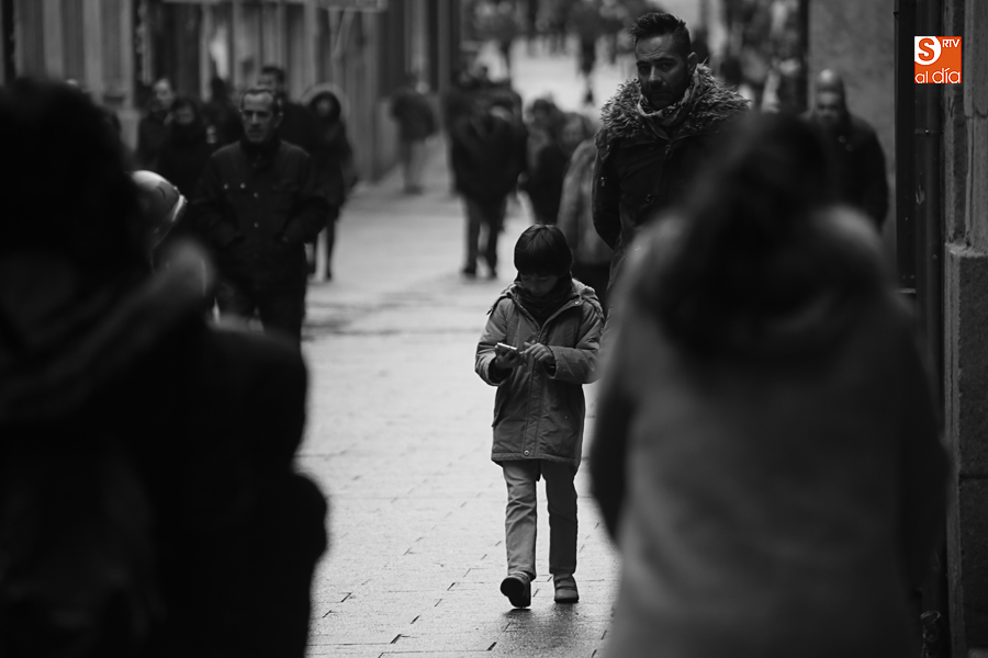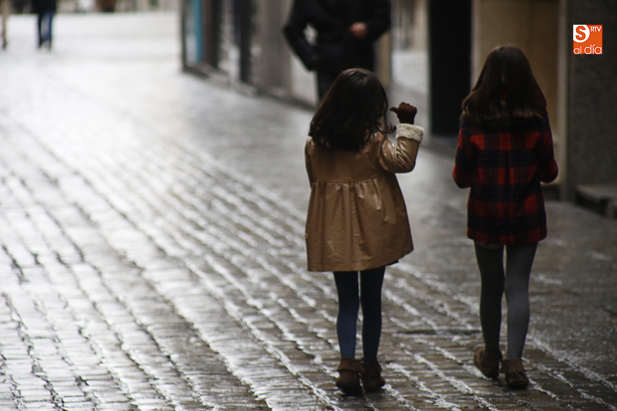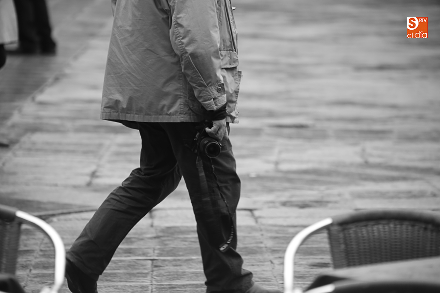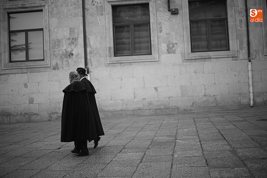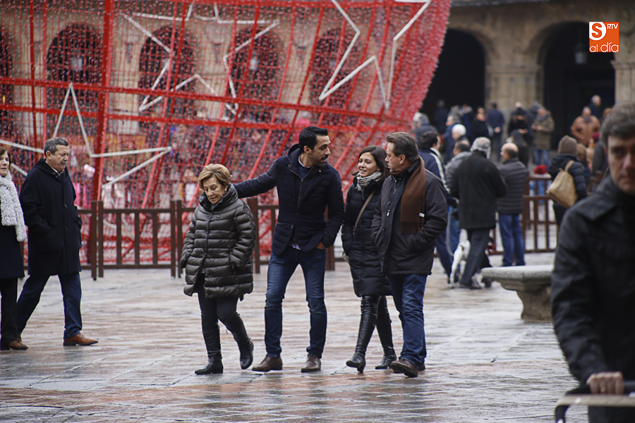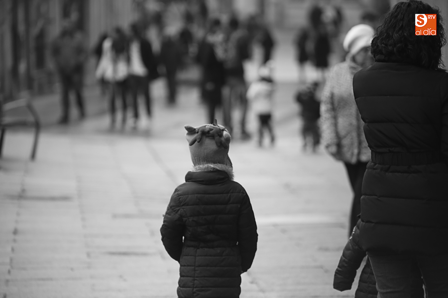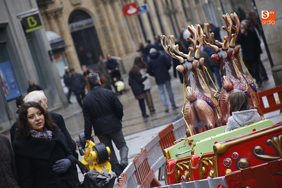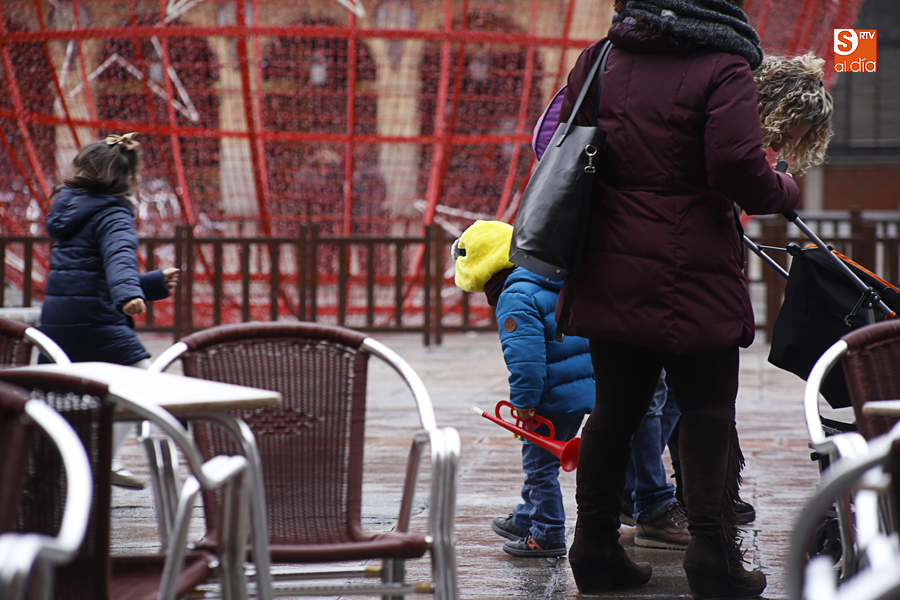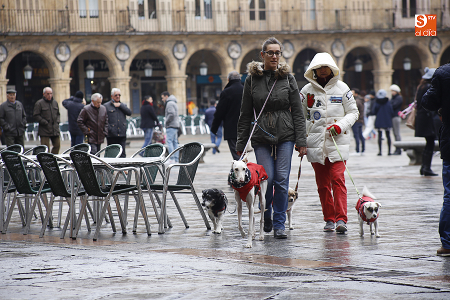 En la mañana de Navidad Salamanca tiene un encanto especial. Parece haberse detenido el tiempo. Envuelta en niebla, la ciudad luce sus eternos encantos. Familias de paseo, curiosos, despistados y algún joven trasnochador en este paisaje en el corazón del casco histórico salmantino.