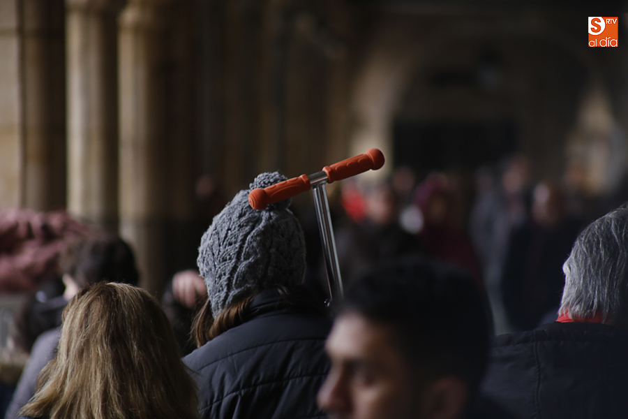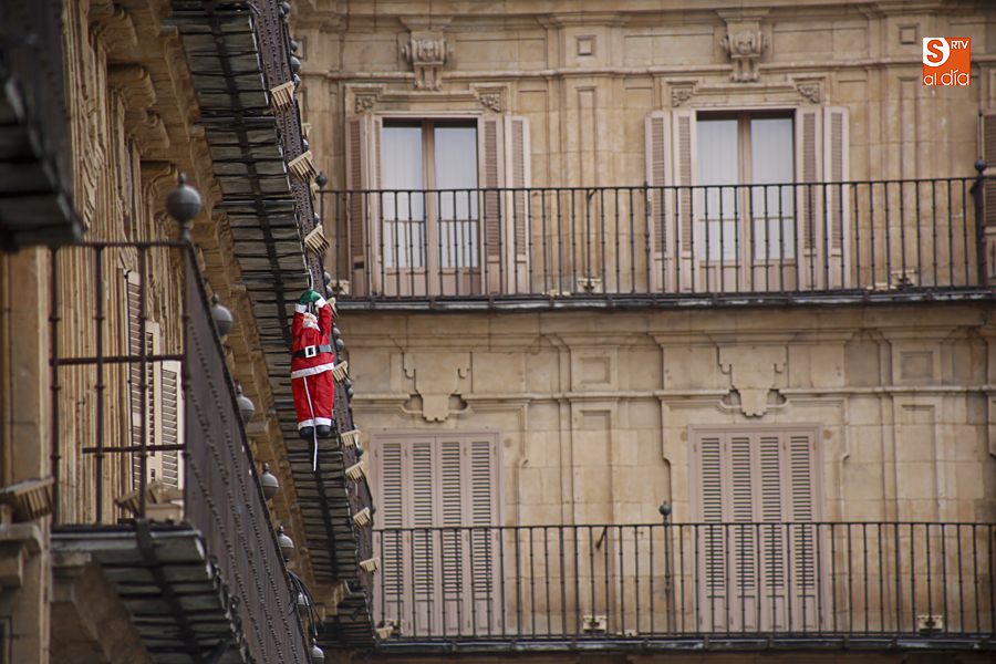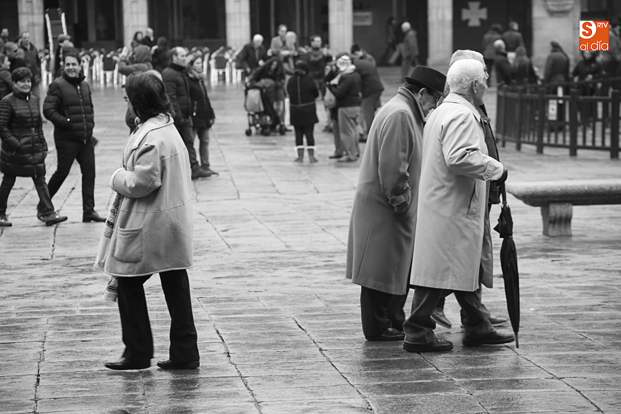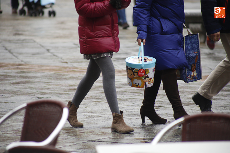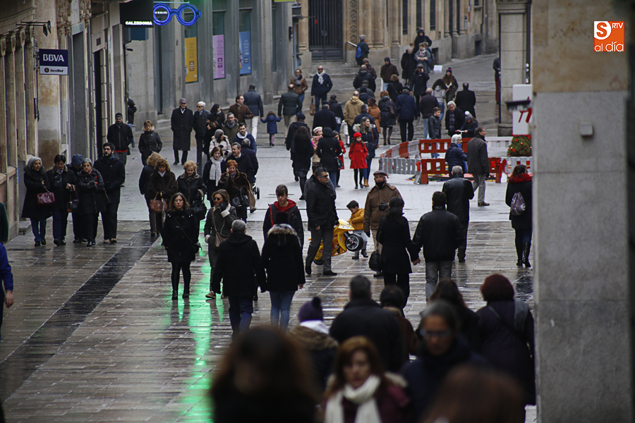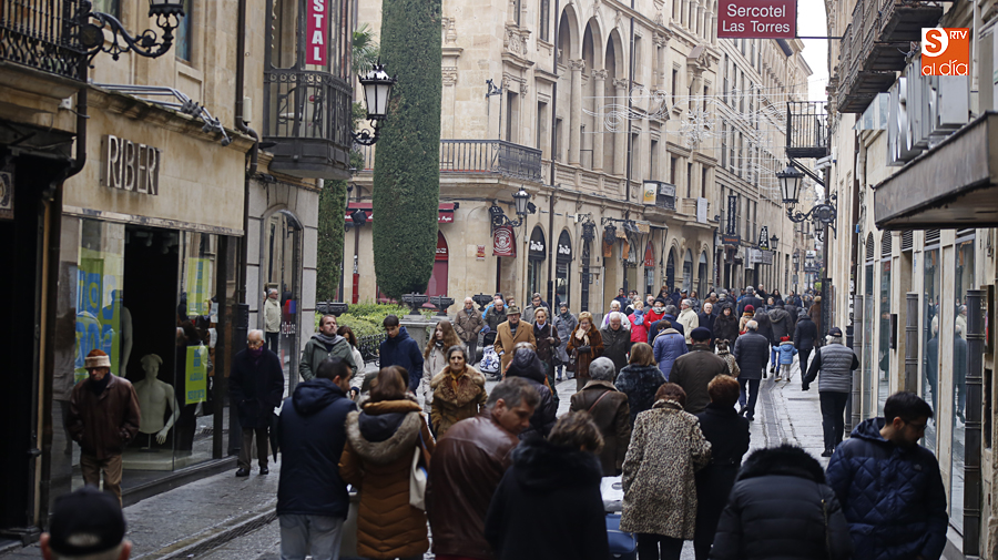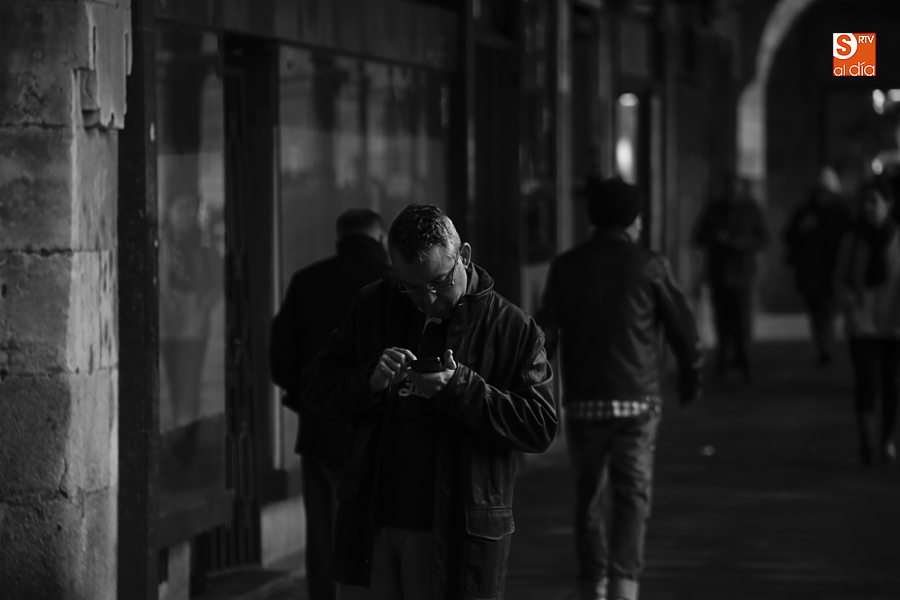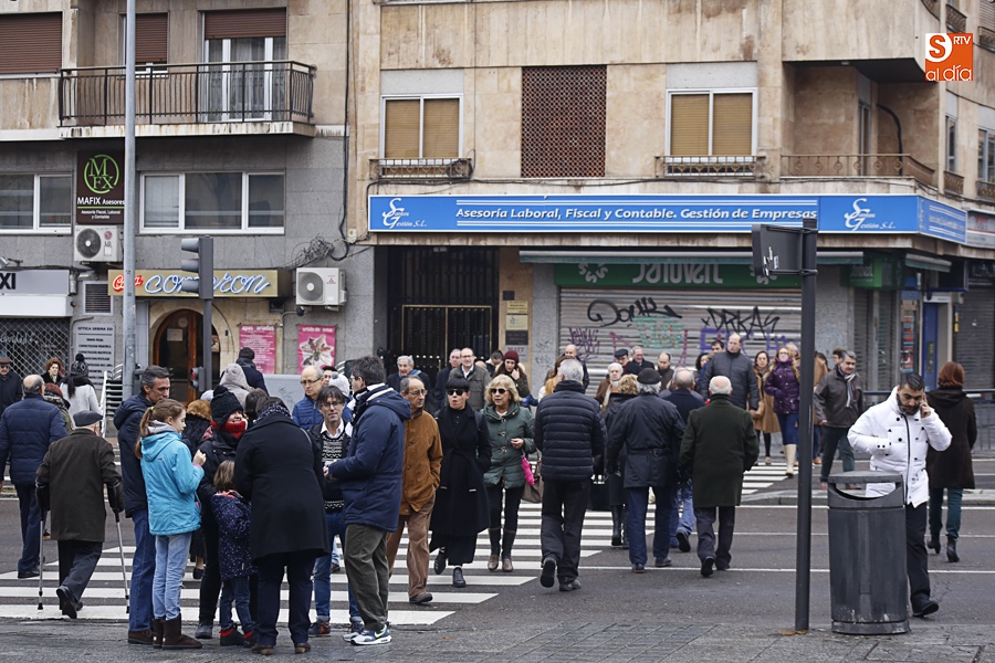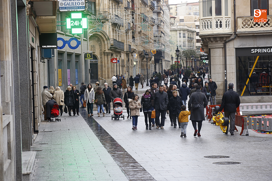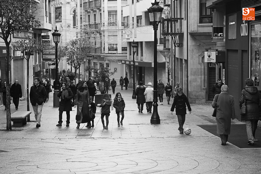 En la mañana de Navidad Salamanca tiene un encanto especial. Parece haberse detenido el tiempo. Envuelta en niebla, la ciudad luce sus eternos encantos. Familias de paseo, curiosos, despistados y algún joven trasnochador en este paisaje en el corazón del casco histórico salmantino.