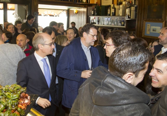 Rajoy aprovechó su visita a Salamanca, sede de un acto del PP, para degustar algunas tapas elaboradas con los productos típicos de la provincia y para visitar el casco histórico.