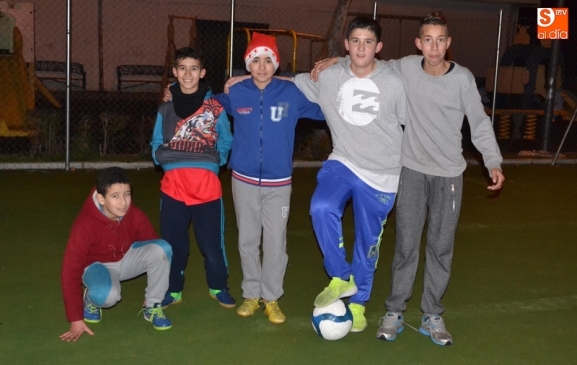 Además del equipo Senior del Ciudad Rodrigo, que volvió a los entrenos en los Campos de Toñete a primera hora de la gélida noche del martes, en el campo del parque infantil de la calle Hermanos García Carraffa -muy cerca del Pabellón Eladio Jiménez- estuvieron jugando al fútbol los jóvenes de la foto, con toque navideño incluido en forma de gorro de Papá Noel que lucía uno de los participantes.