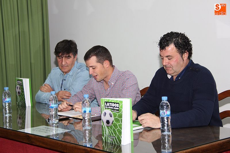 HINOJOSA DE DUERO | Apadrinado por el exjugador de la Real Sociedad Agustín Gajate, descendiente de la localidad, el periodista y escritor presentó su obra 'Latidos del Futbol Charro'