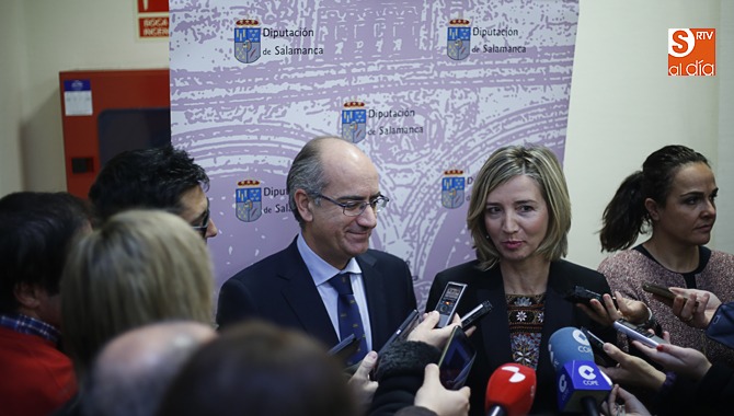 La consejera de Familia e Igualdad de Oportunidades, Alicia García, y el presidente de la Diputación Provincial de Salamanca, Francisco Javier Iglesias, presentaron este miércoles en La Salina el programa 'Crecemos', al que asistieron los alcaldes de los municipios en los que se desarrolla este programa en la provincia de Salamanca.