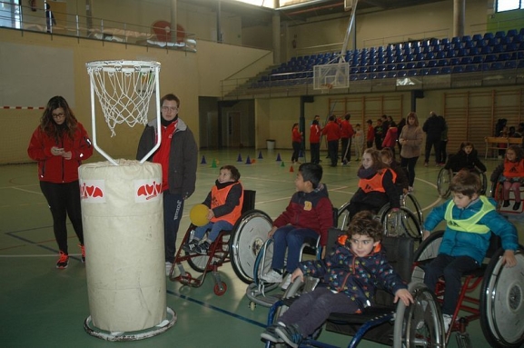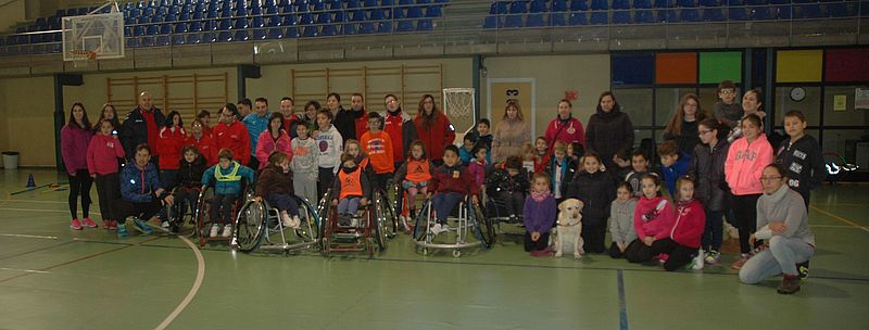 Los participantes, que en esta ocasión eran más jóvenes ya que la actividad se ha incluido dentro de los programas de vacaciones de Navidad de la Ludoteca, 'Navicolonias' y 'Nexus', podían experimentar en primera persona cómo las personas con algún tipo de discapacidad también pueden disfrutar del deporte. Jugar al baloncesto desde una silla de ruedas, jugar al fútbol con un compañero cómo guía o realizar gymkhanas de obstáculos con antifaces para comprobar las sensaciones de los invidentes eran solo algunas de las pruebas que podían realizar los participantes que además estuvieron en contacto con miembros de la Fundación Aviva Salamanca que les explicaron cómo es el día a día de las personas que padecen algún tipo de discapacidad. "Estamos muy satisfechos por la alta participación de los niños guijuelenses en esta jornada", apuntaba la concejala de Cultura y segunda teniente de Alcalde, Mª Jesús Moro Tejedor quien no quiso dejar de pasarse por el Pabellón Municipal de Deportes para participar en la jornada. "Nos parece muy interesante que los niños, desde edades tempranas, sean conscientes de que todo el mundo puede hacer deporte, incluso las personas con discapacidad, conociendo cuáles son las principales barreras con las que se encuentran", indicó Moro Tejedor agradeciendo la colaboración de la Fundación Aviva y de la Escuela Canina Triever-can. De hecho, el trabajo con perros, era una de las actividades estrella de esta edición. Laura y su perro Luca, Cristina y su perro Coco y Eva Arroyo, educadora canina y su perro Nala eran los protagonistas de una de las actividades que más llamaban la atención de los más pequeños. Con ellos se ha trabajado el modo de actuar ante los perros, cómo acariciarlos e interactuar, así como se han realizado ejercicios de psicomotricidad, expresión y empatía, entre otros aspectos.