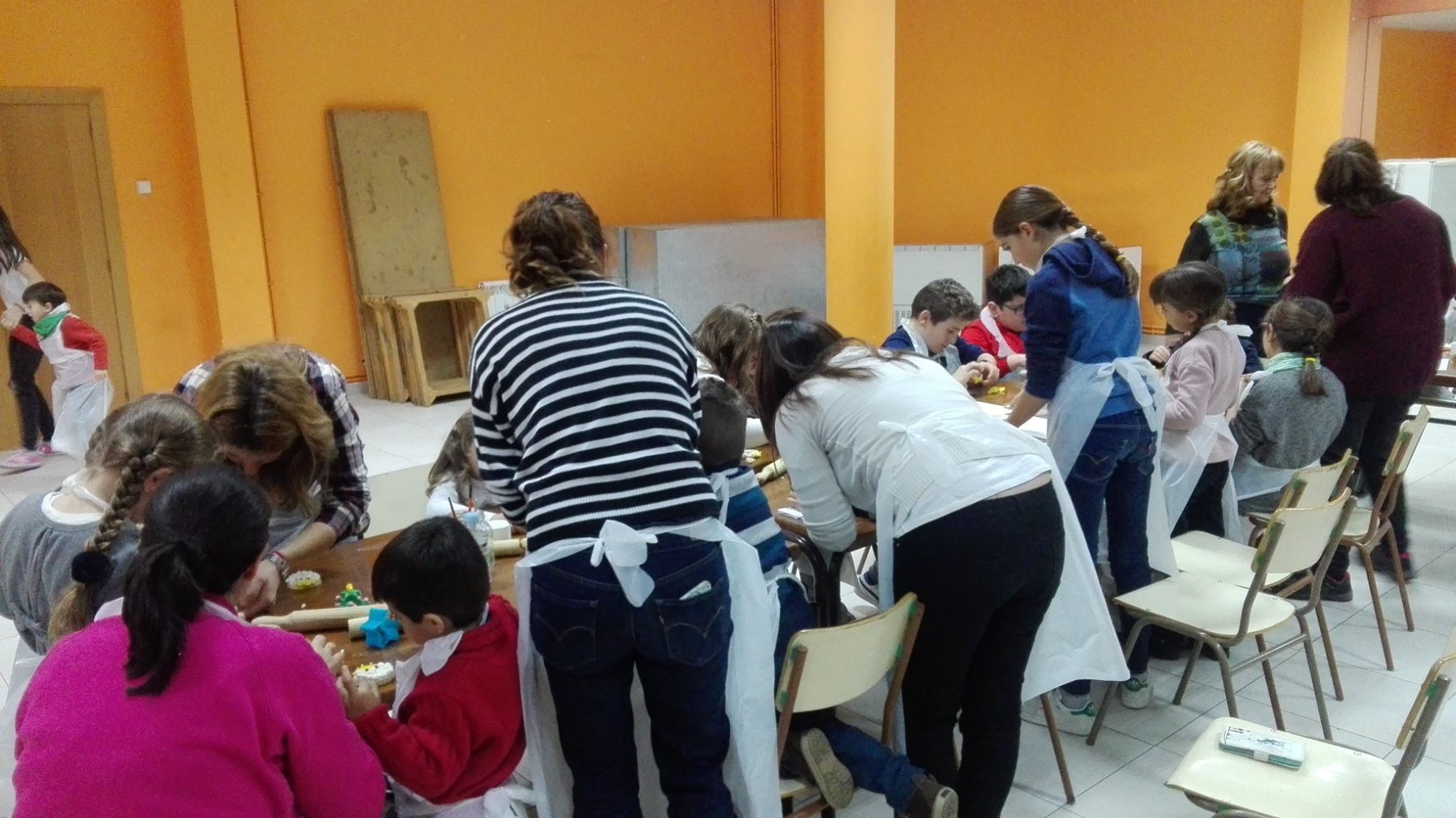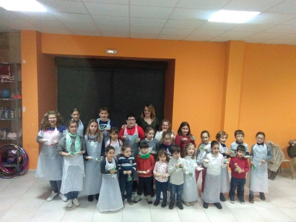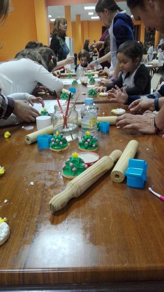 ad en La Panera en la que se comenzó a elaborar galleas de Navidad. Casi treinta pequeños se pusieron manos en la masa y se divirtieron cocinando los dulces que mostraron a sus familias.
