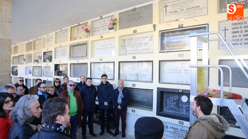 Al acto en el cementerio han acudido familiares de Unamuno así como una amplia representación del PSOE y concejales de Ganemos en el Ayuntamiento salmantino.