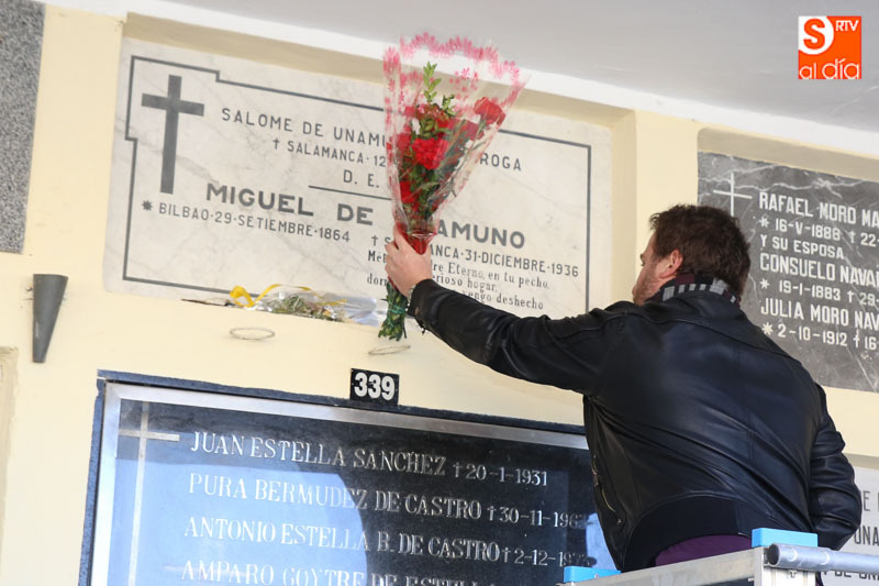 La Asociación Memoria y Justicia, coincidiendo con el aniversario del fallecimiento de Miguel de Unamuno, ha rendido un homenaje al escritor y exrector en el cementerio de San Carlos Borromeo, donde descansan sus restos. Ha sido el actor Josetxu Morán Martín el que ha glosado la vida y obra del autor de la célebre frase "Venceréis porque tenéis sobrada fuerza bruta, pero no convenceréis porque convencer significa persuadir. Y para persuadir necesitáis algo que os falta en esta lucha, razón y derecho".