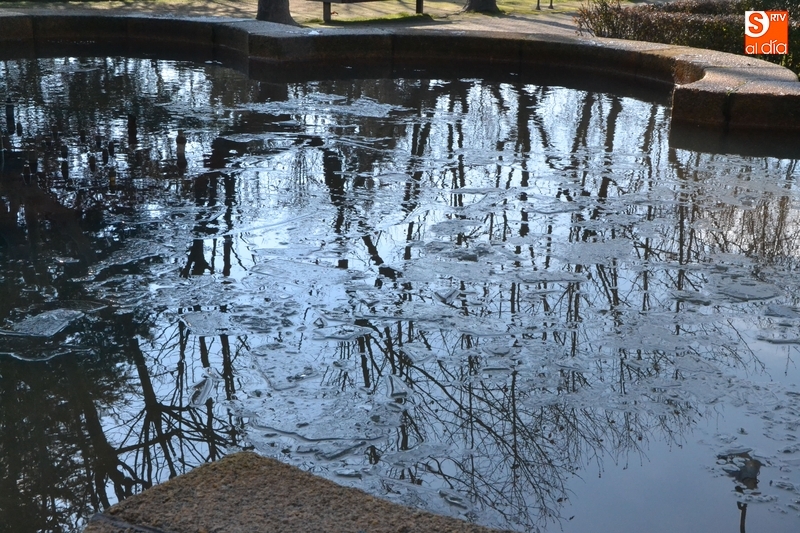 En esa Plazuela volvió a ser un entretenimiento por segundo día consecutivo el carámbano que habían dejado en su fuente las gélidas temperaturas de la madrugada, como también ocurrió en la fuente del Parque de La Glorieta, donde había varios niños jugando de una forma peculiar: sacando las 'placas de hielo' hacia uno de los jardines anexos.