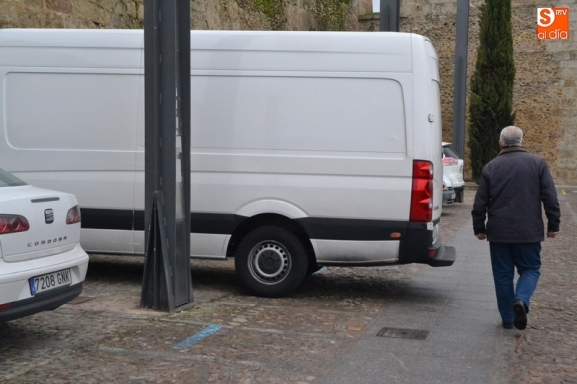 CIUDAD RODRIGO | Pese a estar bien aparcado, un vehículo llegaba a invadir por sus grandes dimensiones el carril de losetas del Registro