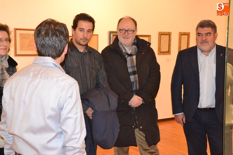 Mariano Esteban de Vega recorrió la muestra acompañado del alcalde Juan Tomás Muñoz y el teniente de alcalde Domingo Benito, con los que habló de nuevo de la posibilidad de que la conmemoración del VIII Centenario de la USAL llegue también a Ciudad Rodrigo.