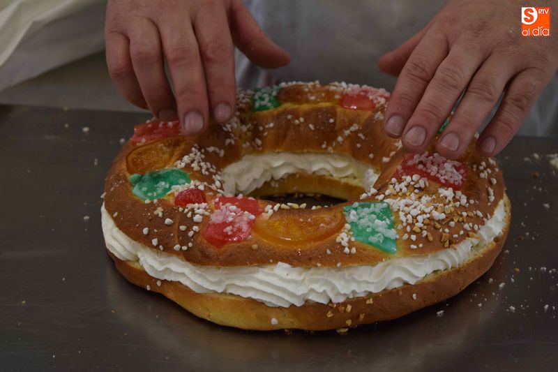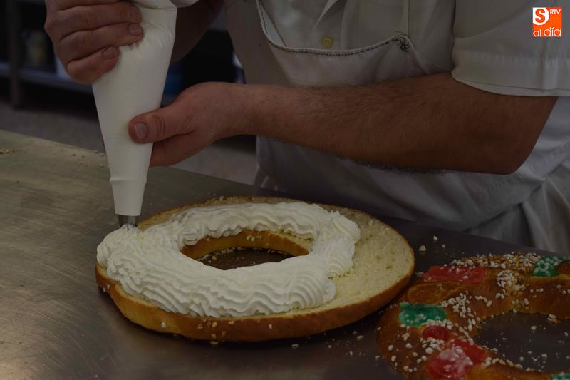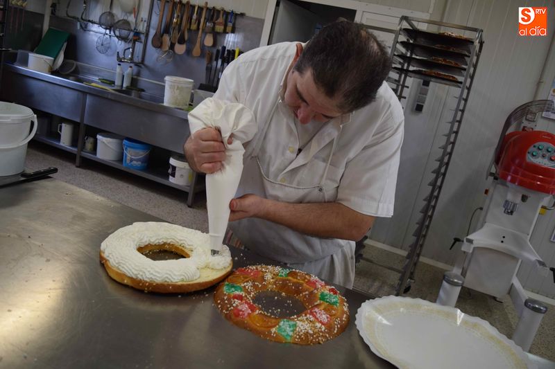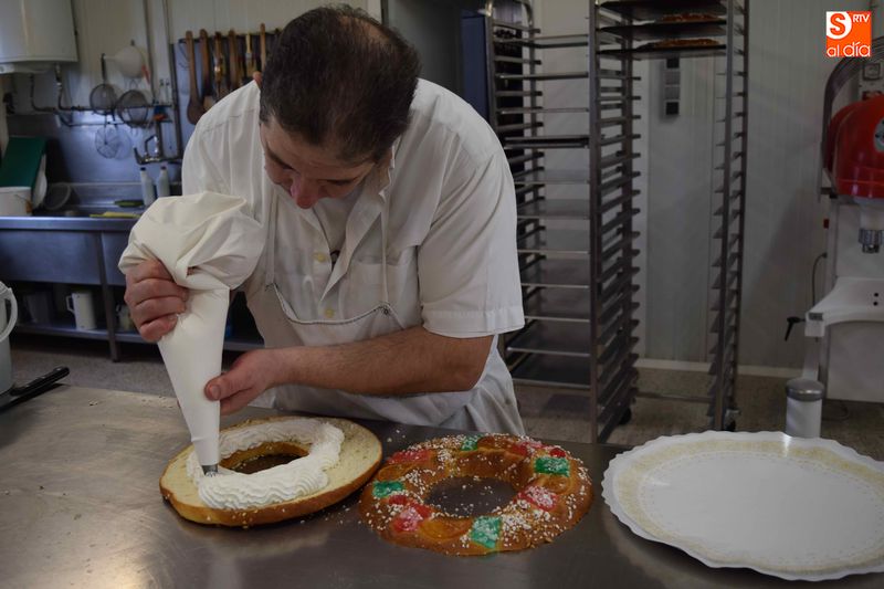 A falta de menos de dos días para que tenga lugar la noche más mágica del año, los Reyes Magos no serán los únicos que entren en las casas de todos los albenses. Y es que durante estos días, en obradores como el de la pastelería 'La Teresiana' se afanan para que los típicos roscones de Reyes tengan un hueco en las casas y mesas de Alba de Tormes. Aproximadamente, la producción de esta pastelería ascenderá a los quinientos roscones, entre todos los tamaños, para que así ningún cliente se quede sin probar el suyo.