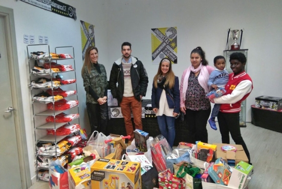 casa, que se disputará el sábado a las 16:15 horas frente al CD Villaralbo. Este jueves, encargadas de la asociación Ave María han pasado a recoger los juguetes para entregárselos a los Reyes Magos y que los envíen esta noche a familias sin recursos.