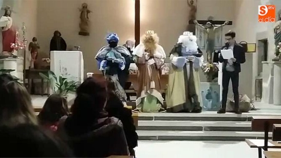 Melchor, Gaspar y Baltasar fueron aplaudidos por los mayores en la entrega de oro, incienso y mirra al Niño Jesús en la iglesia parroquial