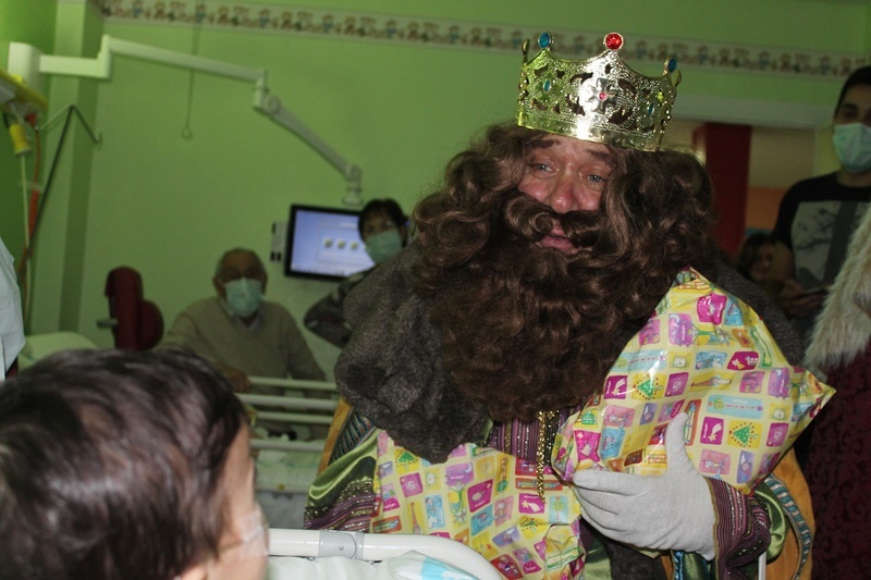 En el Hospital Clínico, sus Majestades han acudido a las habitaciones de los niños ingresados y les han sorprendido con su visita. Cada uno de los pequeños ha recibido un presente y han podido también hacerse fotografías de recuerdo. Además de por la planta de Pediatría, también han recorrido la UCI pediátrica, han visitado a los neonatos y a sus padres y a los niños recién nacidos repartiendo sonrisas y regalos y haciendo disfrutar a los pequeños, que han mostrado su sorpresa y admiración por Sus Majestades.