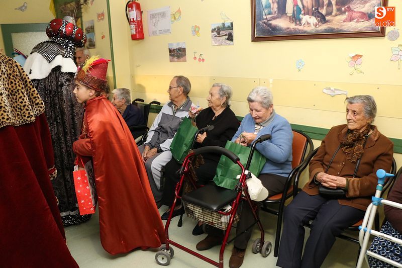 Así, antes de la visita a los vecinos de la localidad aneja de Cabeza de Framontanos, Melchor, Gaspar y Baltasar se dirigieron a Villarino de los Aires para visitar a los mayores, tradicional visita a la residencia municipal y en la que estuvieron acompañados por el alcalde y algunos concejales del Ayuntamiento.