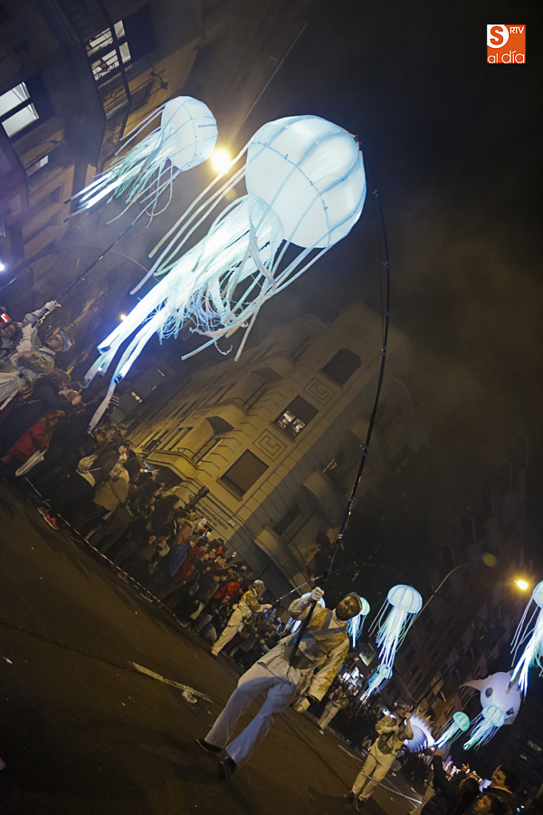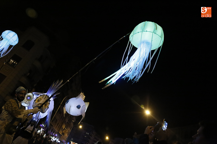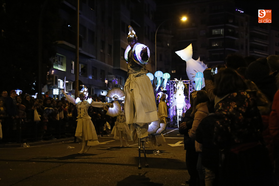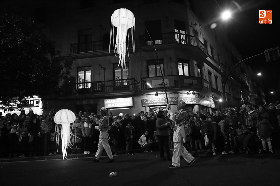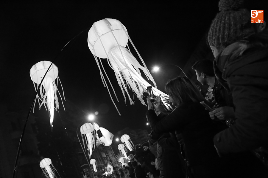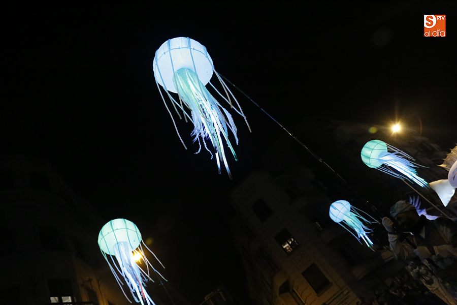 Acompañando a los tronos reales y las carrozas de la Cabalgata de Reyes, 26 actores convierten el recorrido en un gran espectáculo inspirado en el mar, Abysses. Un impresionante cortejo de luz avanza en la noche, llevado por el ritmo de Taikos y sonidos electro. Una medusa Vía Láctea, las estrellas que brillan, un caballito de mar majestuoso, acompañado por zancudos. El Señor del Mar orgulloso de conducir el carro de los Océanos. Peces como las estrellas, incluso más desmesurados, titiriteros audaces vienen a cerrar este mosaico.