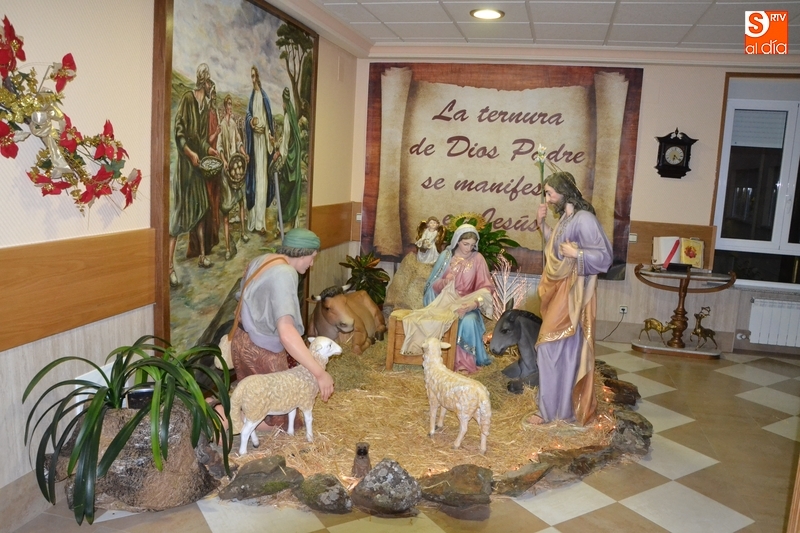 En esta Residencia han destacado los belenes, contando con hasta tres nacimientos principales que se pueden ir viendo en las imágenes. Por un lado, en el hall del centro está la clásica composición de figuras a tamaño real. Por otro lado, está el belén a dos alturas de la capilla de la Residencia. Y por último, el cuidado montaje que se ha habilitado este año con todo lujo de detalles en otro de los puntos de la planta baja.