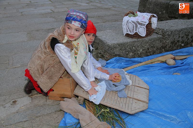 Los vecinos de Ledrada vivieron hoy una emocionante jornada con la celebración de su primer belén viviente para animar el Día de Reyes. Una decena de puestos se instalaron alrededor de la iglesia parroquial, con el portal en la entrada del templo. No faltó el castillo de Herodes, el corral de ganado, el río con las lavanderas, una tasca, las hila
