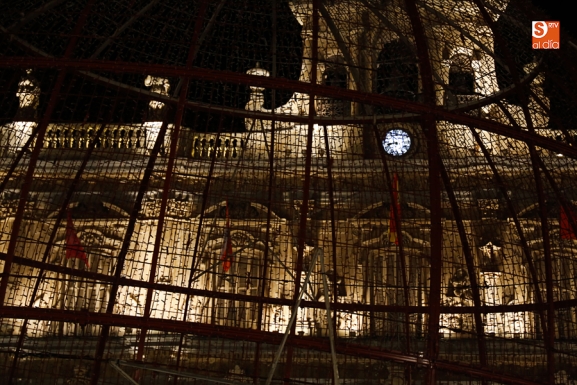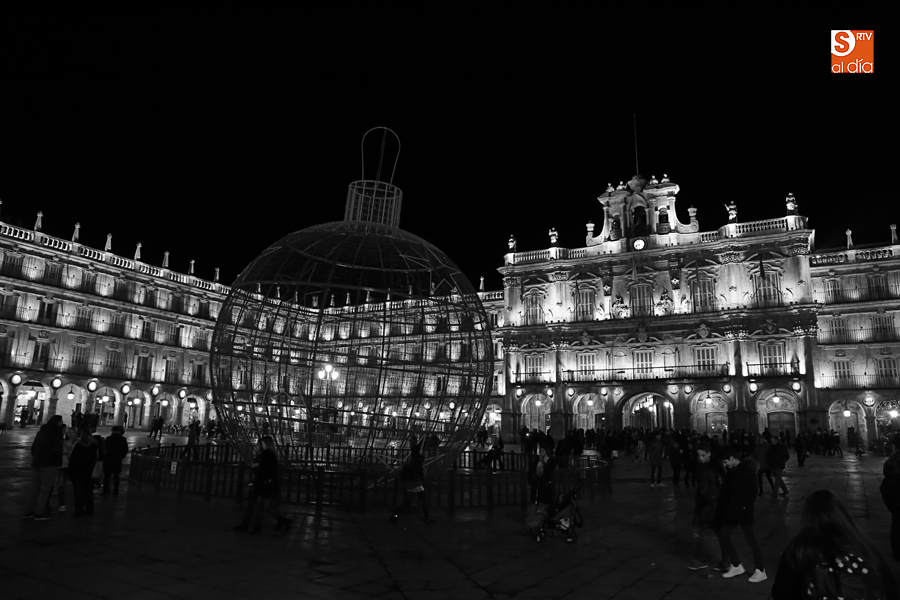 La bola roja ya no luce en el centro de la Plaza Mayor. Lo que se ha convertido en un símbolo de los adornos navideños en Salamanca pasa sus últimas horas en el centro del ágora a la espera de su desmontaje. Ya no se ve a los miles de ciudadanos que cada día se hacían selfies o fotografiaban la bola de Navidad. El tiempo pasa y con el apagado de las luces rojas de su estructura se anuncia la vuelta a la rutina, tras unas fiestas siempre especiales.