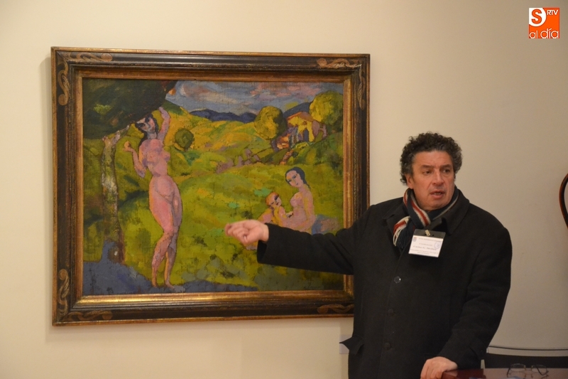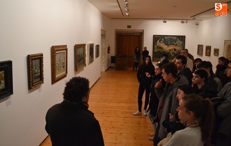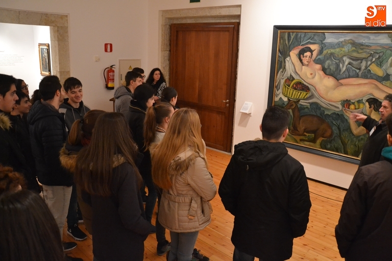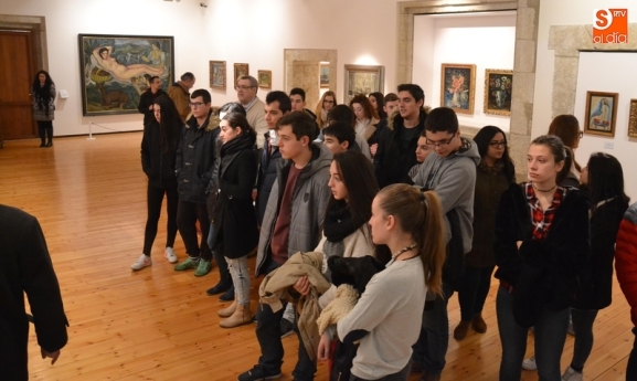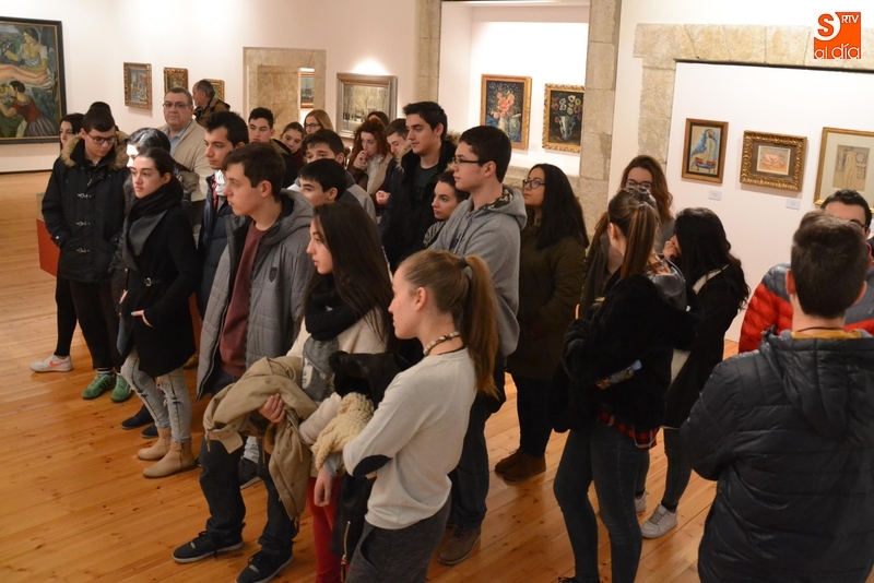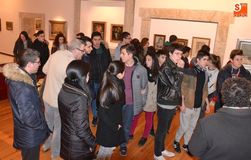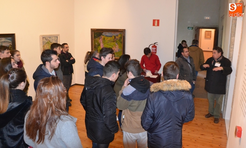 La visita de la mañana del martes de los alumnos del IES Fray Diego fue guiada por el pintor mirobrigense Carlos García Medina.