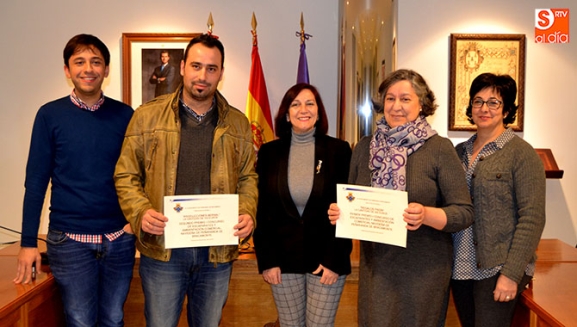 La alcaldesa de Peñaranda, Carmen Ávila, y el concejal de festejos Francisco Díaz, entregaban este martes los premios del I Concurso de escaparates y ambientación navideña organizado por el Ayuntamiento.