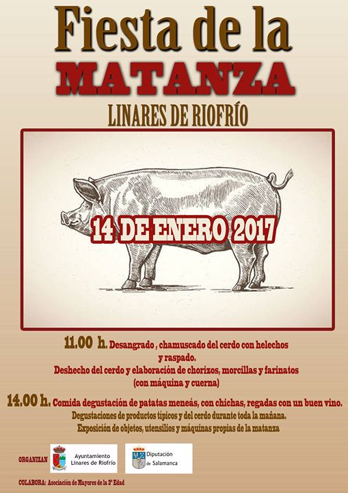Linares de Riofrío se vestirá de fiesta el próximo sábado, 14 de enero con la celebración de una nueva edición de la Fiesta de la Matanza. El Ayuntamiento de la localidad, en colaboración con la Asociación de Mayores, organizan este tradicional evento que está incluido en el nuevo calendario de matanzas de la Diputación de Salamanca, siendo la primera cita de 2017.
