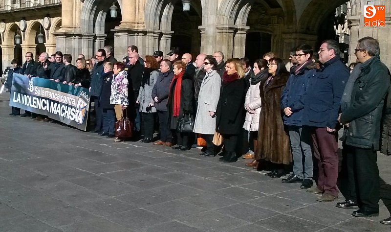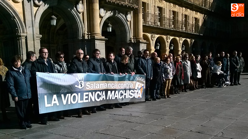 Con el fin de mostrar un rechazo contundente a la violencia machista, el Ayuntamiento de Salamanca convocaba este martes una concentración en la Plaza Mayor, en la que han participado concejales de los cuatro grupos y que concluía con un minuto de silencio por la última víctima.