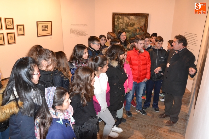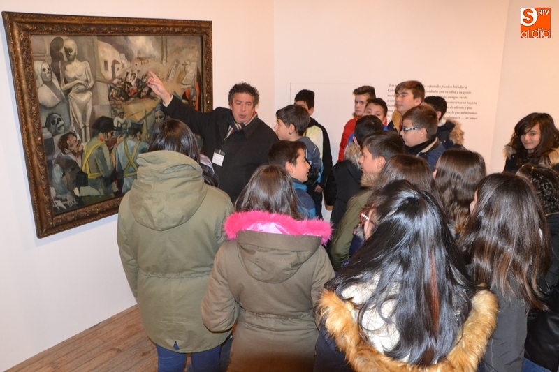 En la mañana del miércoles, se acercaron dos grupos de 1º de la ESO, que conocieron la figura y obra de Celso Lagar de la mano del guía de la muestra, el pintor Carlos García Medina.