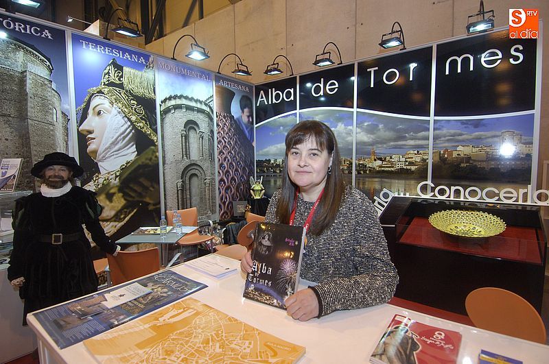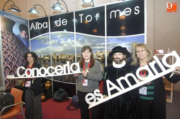La técnico de Turismo Ana Écija, destacó los objetivos principales del Ayuntamiento albense en la feria: "Una de nuestras principales tareas en FITUR es la captación de grupos, organizamos reuniones con touroperadores tanto nacionales como internacionales para ofrecer las enormes posibilidades de Alba de Tormes. También tenemos sorteos y otras actividades que llaman la atención del público más casual aquí en la feria. Una de las cosas más importantes que tenemos en la FITUR es una especie de recopilación de lugares y experiencias que se pueden vivir en Alba de Tormes y que ofrecemos al público. Todas estas actividades tienen un precio conjunto de 20 euros, y que permite entrar en todos los monumentos de la ciudad, asistir a una demostración de alfarería, una degustación de embutidos, comer en uno de los restaurantes participantes, asistir a una sesión de toreo de salón, que está llamando la atención de muchos visitantes, especialmente extranjeros, que incluye visita a la plaza de toros. Luego si es verano, se incluye un paseo por el río, en barca, canoa o kayak, experiencia que ofrece de las mejores vistas de la ciudad. Y todo ello por un precio realmente llamativo. Y lo más importante es que el Ayuntamiento no vende ese paquete, sino que simplemente recopilamos todas las actividades y las ofrecemos a los visitantes, quienes luego pueden ajustarlo a sus necesidades, añadiendo o quitando algunas de la lista. Es una propuesta que está teniendo mucho éxito y que llama la atención de muchos touroperadores, especialmente de extranjeros. Es flexible, adaptable, y con una oferta tan amplia que permite que visitantes que hayan pasado un día entero visitando Alba con una serie de experiencias, puedan repetir con las que le aún quedan por descubrir".