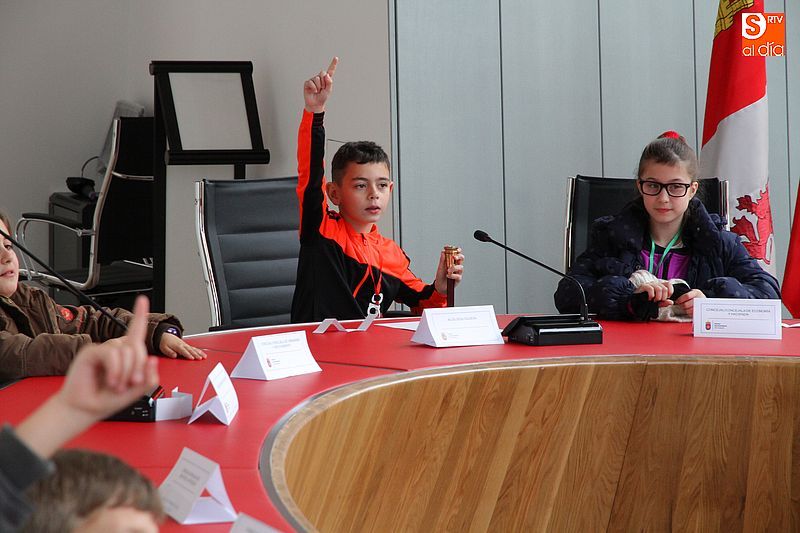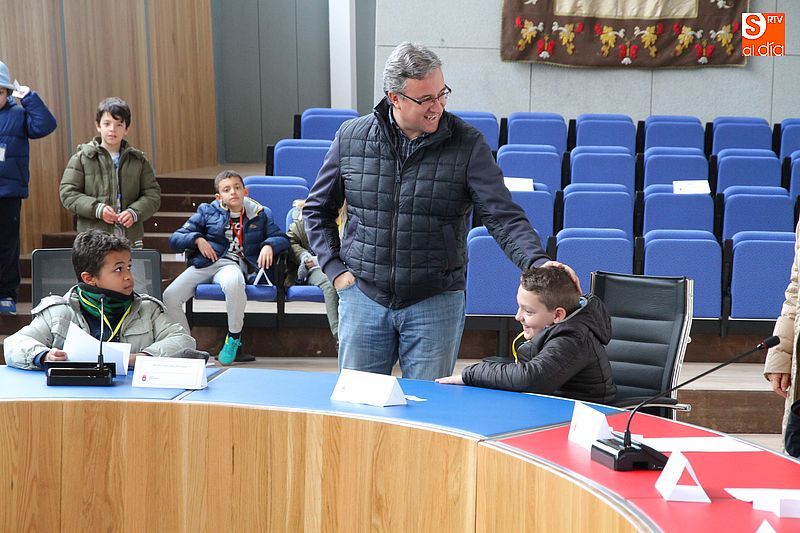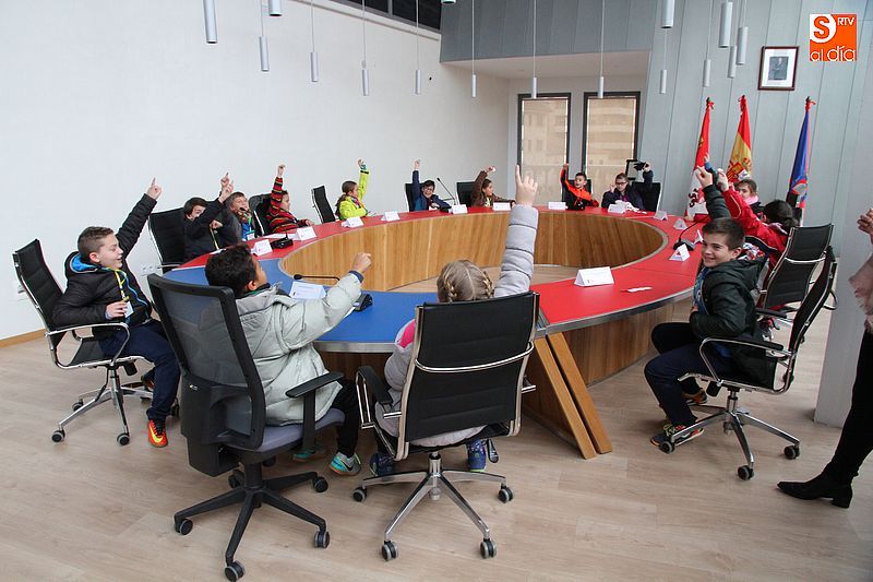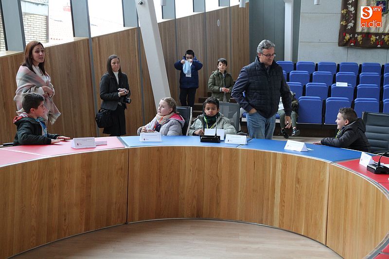 balcón de la plaza Mayor y, naturalmente, el salón de plenos. Precisamente allí, los colegiales participaron en una actividad en la que cada uno de ellos adoptó un papel en un simulacro de sesión plenaria. Durante unos instantes tuvieron que actuar y tomar decisiones como si fueran el alcalde, los concejales, la oposición, secretario, interventor, prensa o público. En las próximas semanas se recibirán nuevas visitas del citado colegio, que ese extenderán en breve al Miguel de Cervantes.