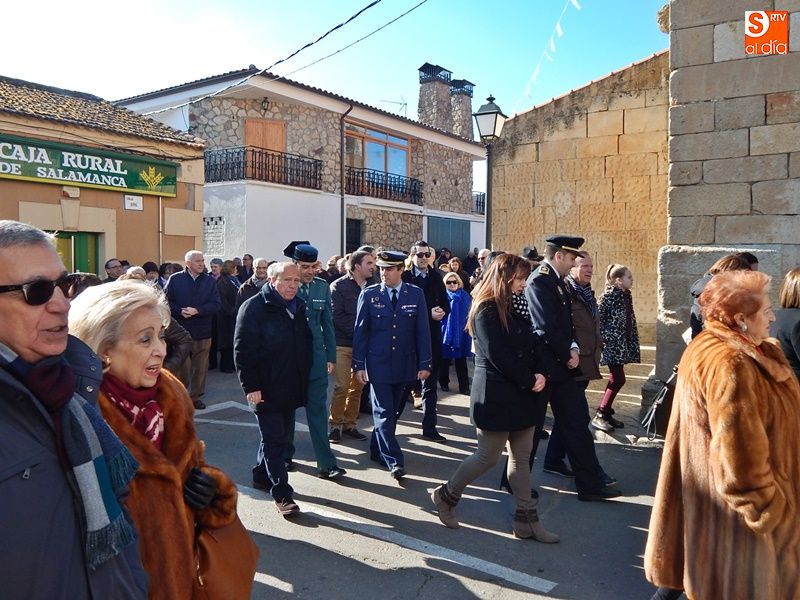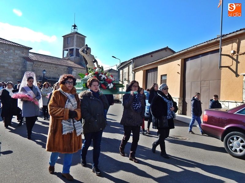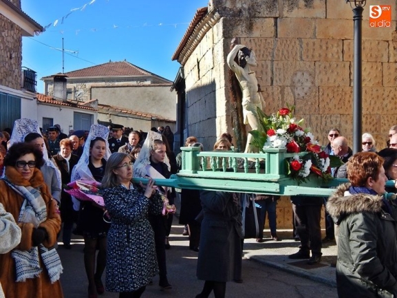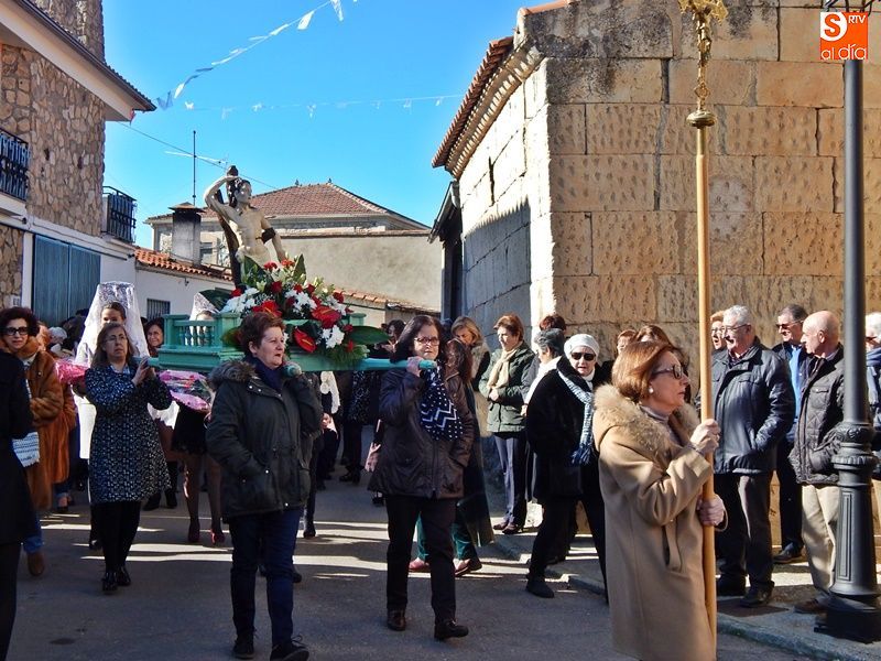 Jornada festiva en Valdelosa para honrar al patrón San Sebastián que, escoltado por los vecinos y las mayordomas de este año, y portada por mujeres durante la mayor parte de la procesión, ha recorrido las calles del municipio tras la celebración de la Santa Misa, cantada por el grupo folclórico Zaragata. Una jornada en la que no han
