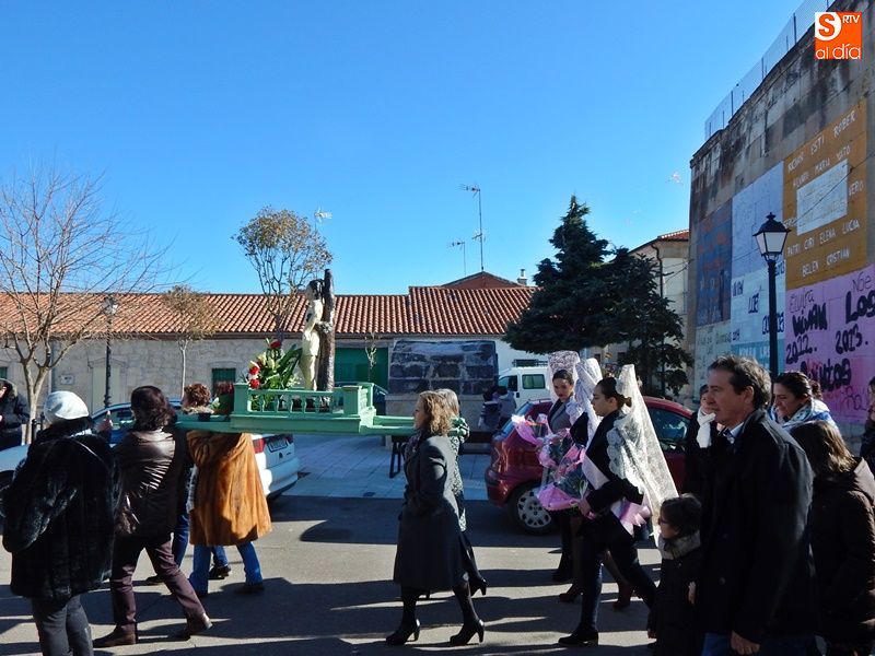 VALDELOSA | Portado por las mujeres, y escoltado por las mayordomas y los vecinos, la imagen del patrón ha salido de la iglesia para recorrer las calles del municipio