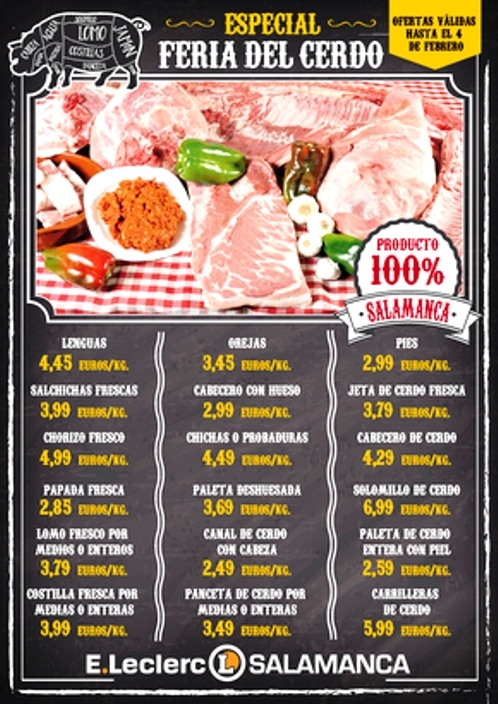 Los clientes podrán encontrar en los lineales del hipermercado toda una gama de productos relacionados con el cerdo, a precio de coste y con origen en Salamanca. Como por ejemplo: la costilla fresca, el solomillo o el lomo fresco de cerdo.