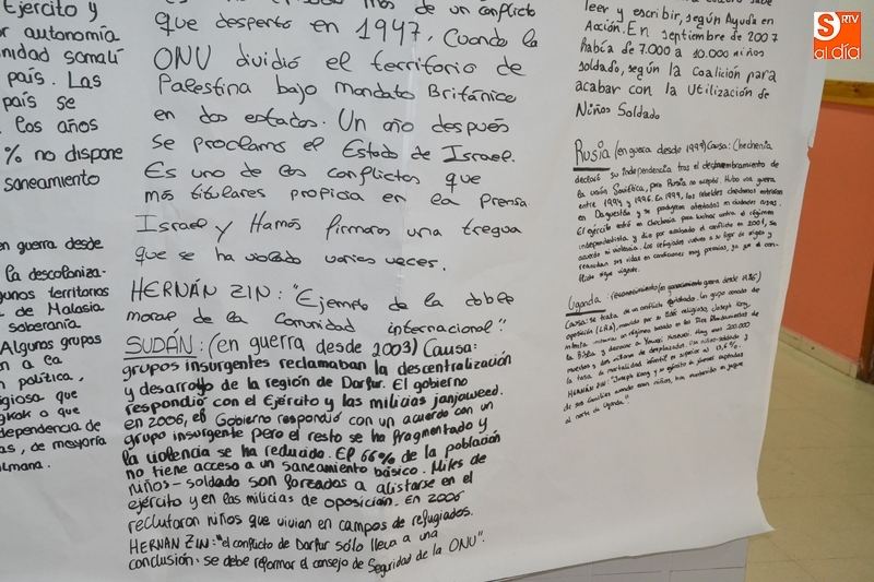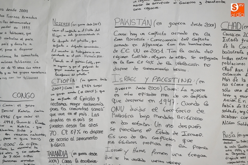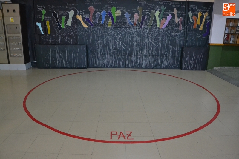 Uno de ellos será el IES Tierra de Ciudad Rodrigo, que durante estos días ha estado preparando su hall para esa conmemoración, diseñando un gran círculo con la leyenda 'Paz', y colgando una bandera-denuncia donde se habla de países de todo el mundo donde hay conflictos bélicos en la actualidad.