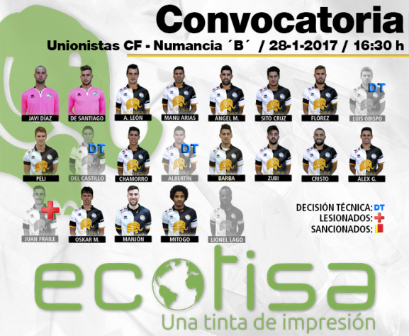 Jorge González 'Astu', entrenador de Unionistas de Salamanca CF, ha realizado la convocatoria de 16 futbolistas para el partido ante el CD Numancia B. El encuentro, correspondiente a la jornada 23 en Tercera División, se celebrará el sábado 28 de enero a partir de las 16:30 en Las Pistas del Helmántico.