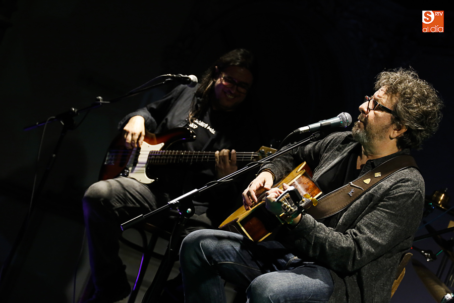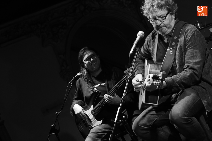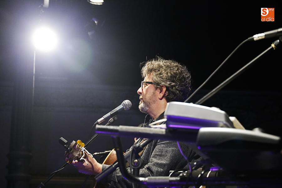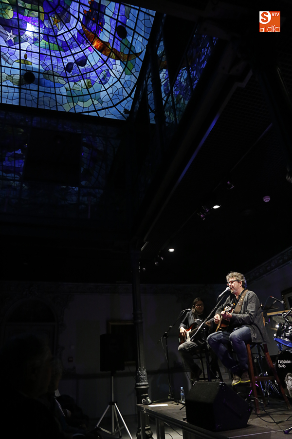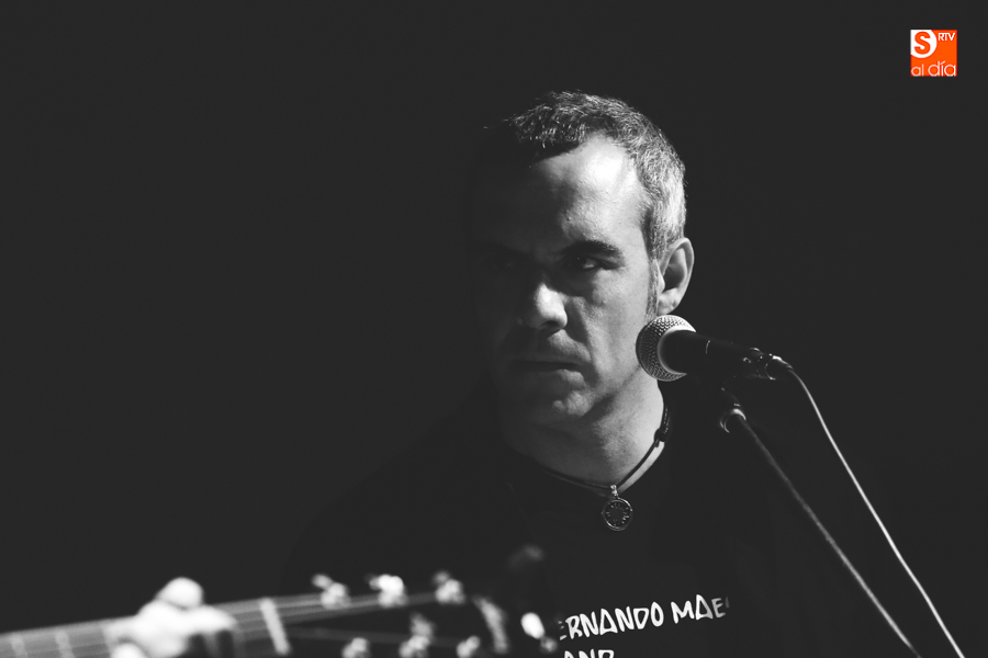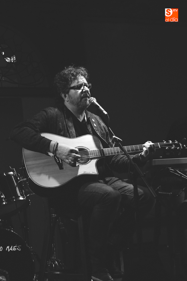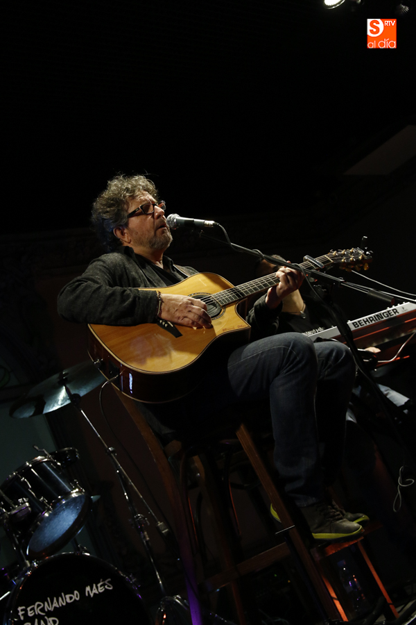 El cantautor Fernando Maés, acompañado por su banda habitual, Chefo Martín al piano y coros, Jorge Orejudo a la batería y Pedro Álvarez al bajo, actuó este sábado a las 21 horas en