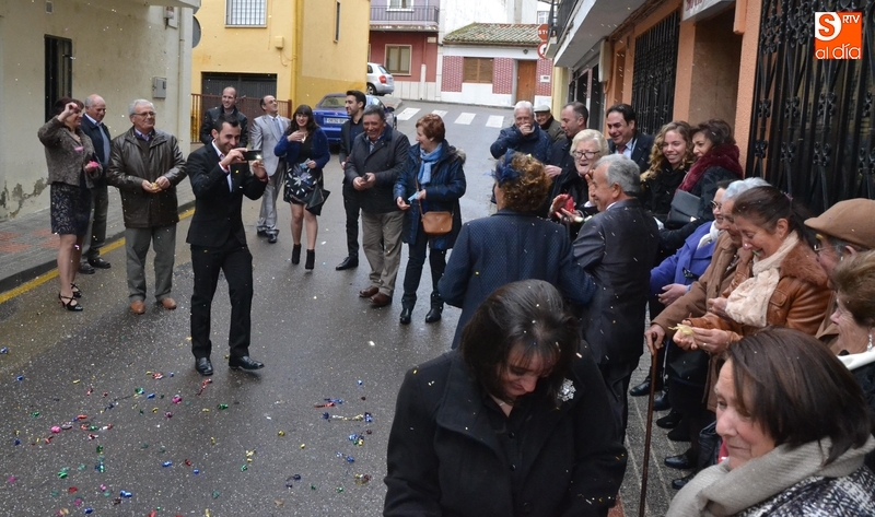 A la conclusión de la Eucaristía, y tras las preceptivas fotos de familia, hijos, nietos y otros familiares esperaron al matrimonio a la puerta del templo para lanzarles arroz y confeti. A continuación, todos los presentes se dirigieron a comer al Restaurante El Mirador.