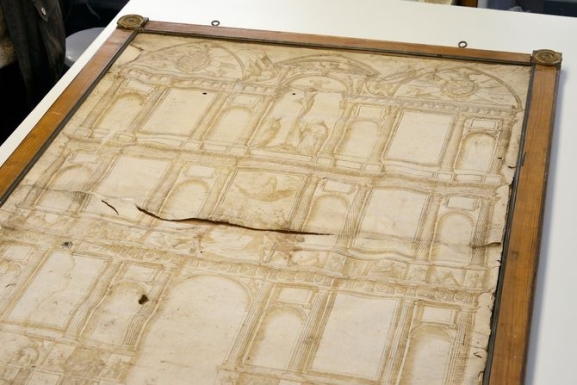 La Consejería restaurará este dibujo, que consta de dos piezas de pergamino unidas sobre las que se plasmó la traza en tinta y aguada. Actualmente, se encuentra enmarcado sobre un tablero, bastidor y marco de madera y presenta diferentes grados de alteración que desvirtúan la lectura de la obra: suciedad, numerosas manchas, pérdidas de soporte y una fuerte deshidratación de la piel que se manifiestan en tensiones, pliegues y deformaciones.