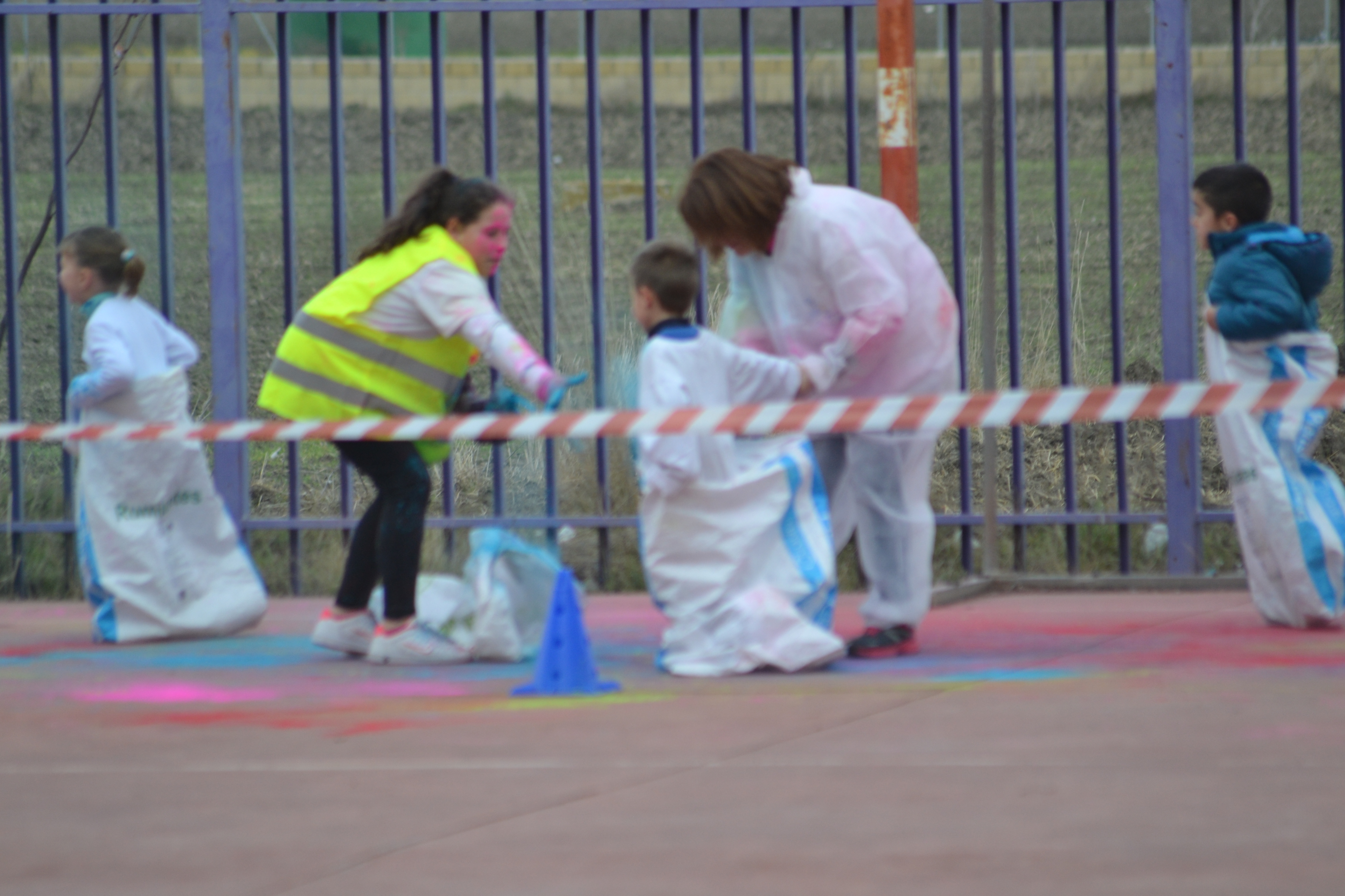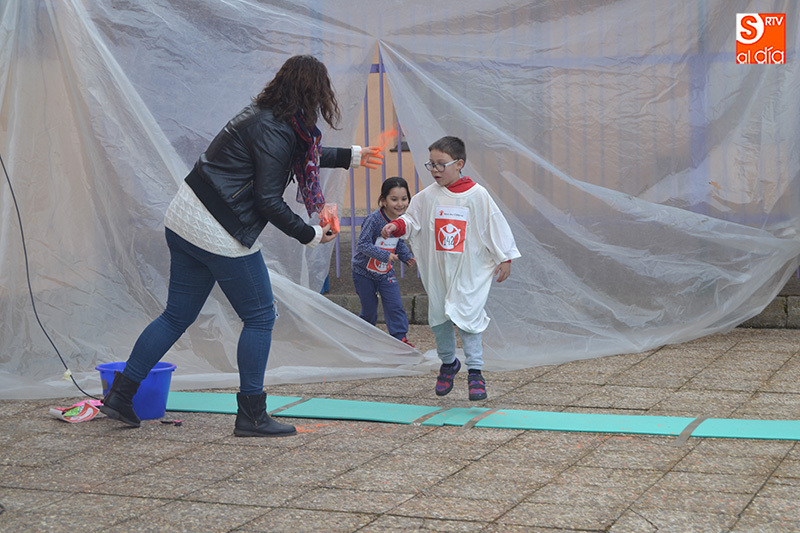Esta original iniciativa, en la que los escolares realizaron un circuito organizado en el patio del centro recibiendo baños de color en numerosos puntos del recorrido, tenía fines benéficos ya que la recaudación obtenid