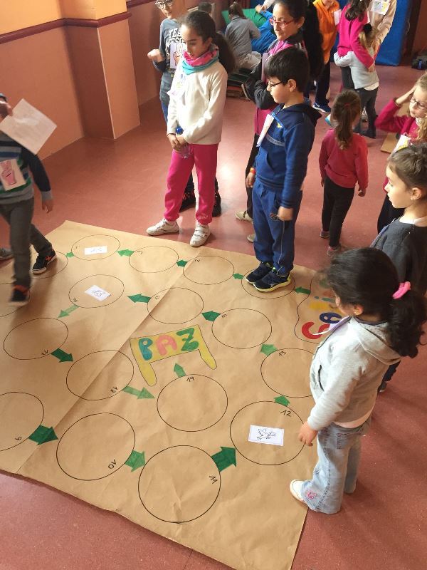 Por ejemplo, algunas de las actividades que se han realizado son: el juego de "La oca de La Paz", un vídeo realizado por ellos mismos, pin pacífico, una canción con su correspondiente coreografía llamada "Paz"... Todas ellas con el fin de seguir fomentando valores positivos en nuestros alumnos/as.